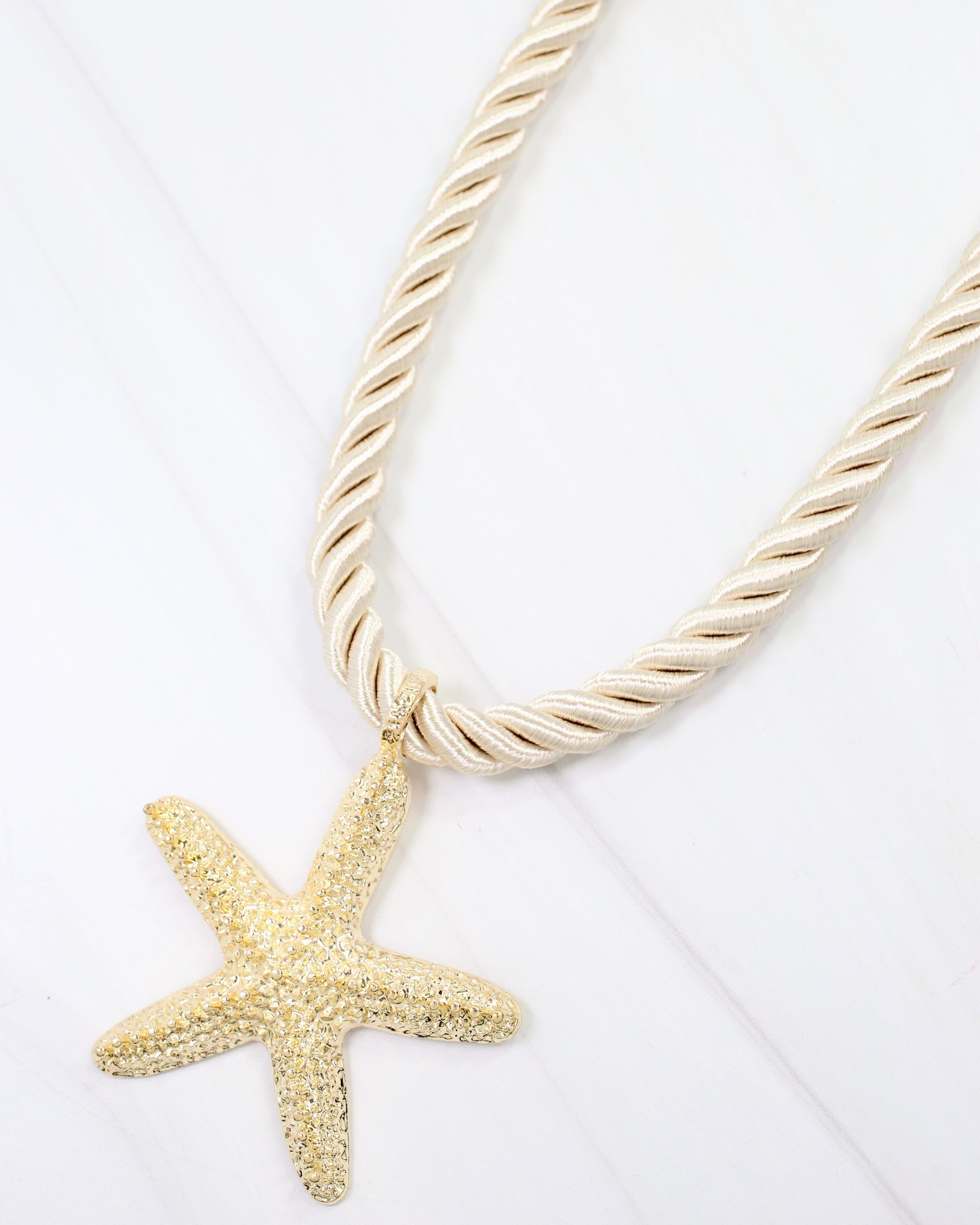 The Grayling Textured Starfish Cord Necklace brings coastal charm to your jewelry collection. Featuring a detailed starfish pendant with rich texture suspended from a sleek cord, this gold-toned piece captures seaside elegance. Whether you're drawn to nautical aesthetics or simply love statement-making accessories, this necklace delivers distinctive style with effortless appeal.