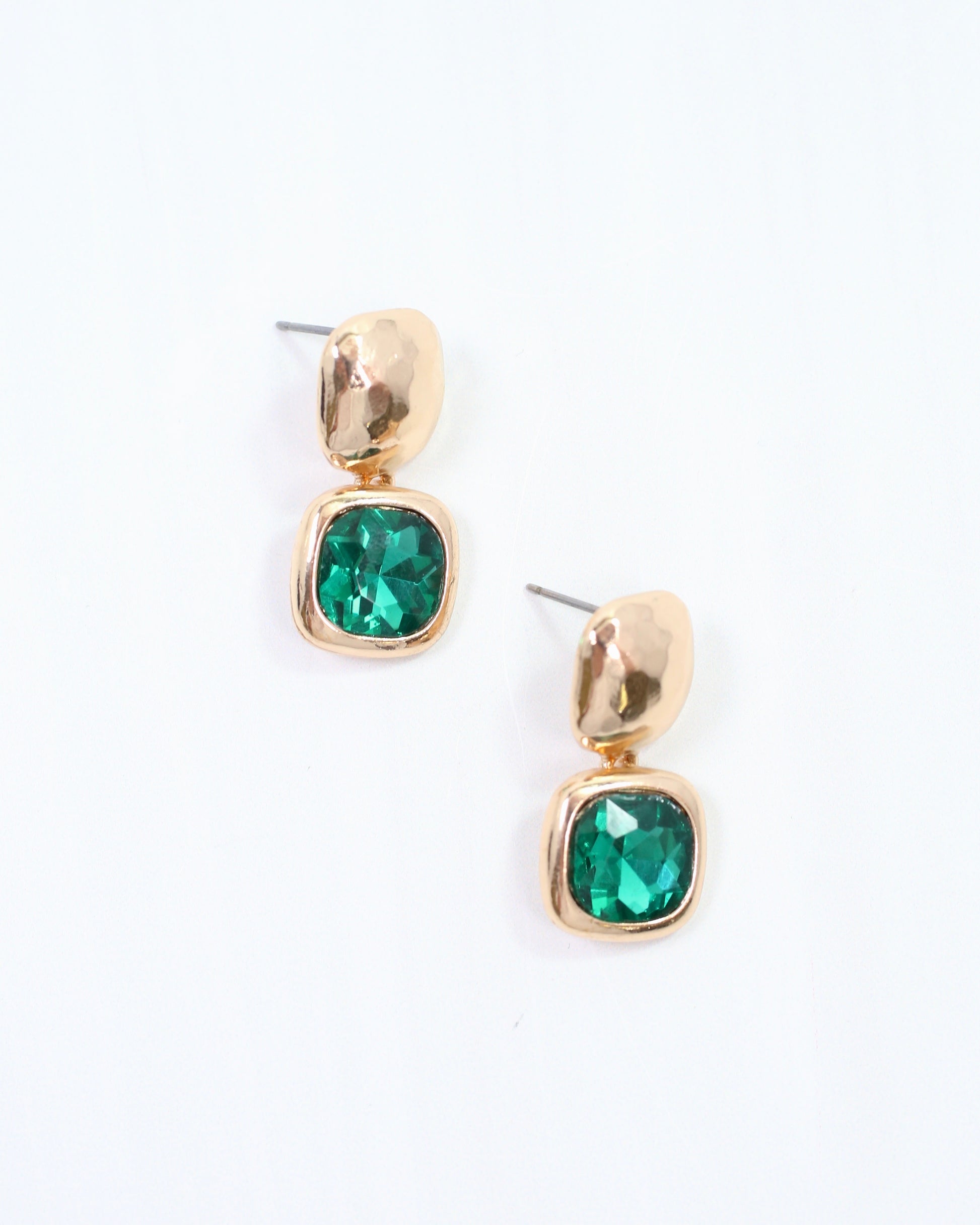 Elevate your look with the Hawthorne Hammered Crystal Drop Earring in Green. Featuring a chic hammered top paired with a sparkling crystal drop, these earrings add a graceful touch to any outfit. Perfectly suited for both day and night, they bring a subtle yet stylish shine to your ensemble.