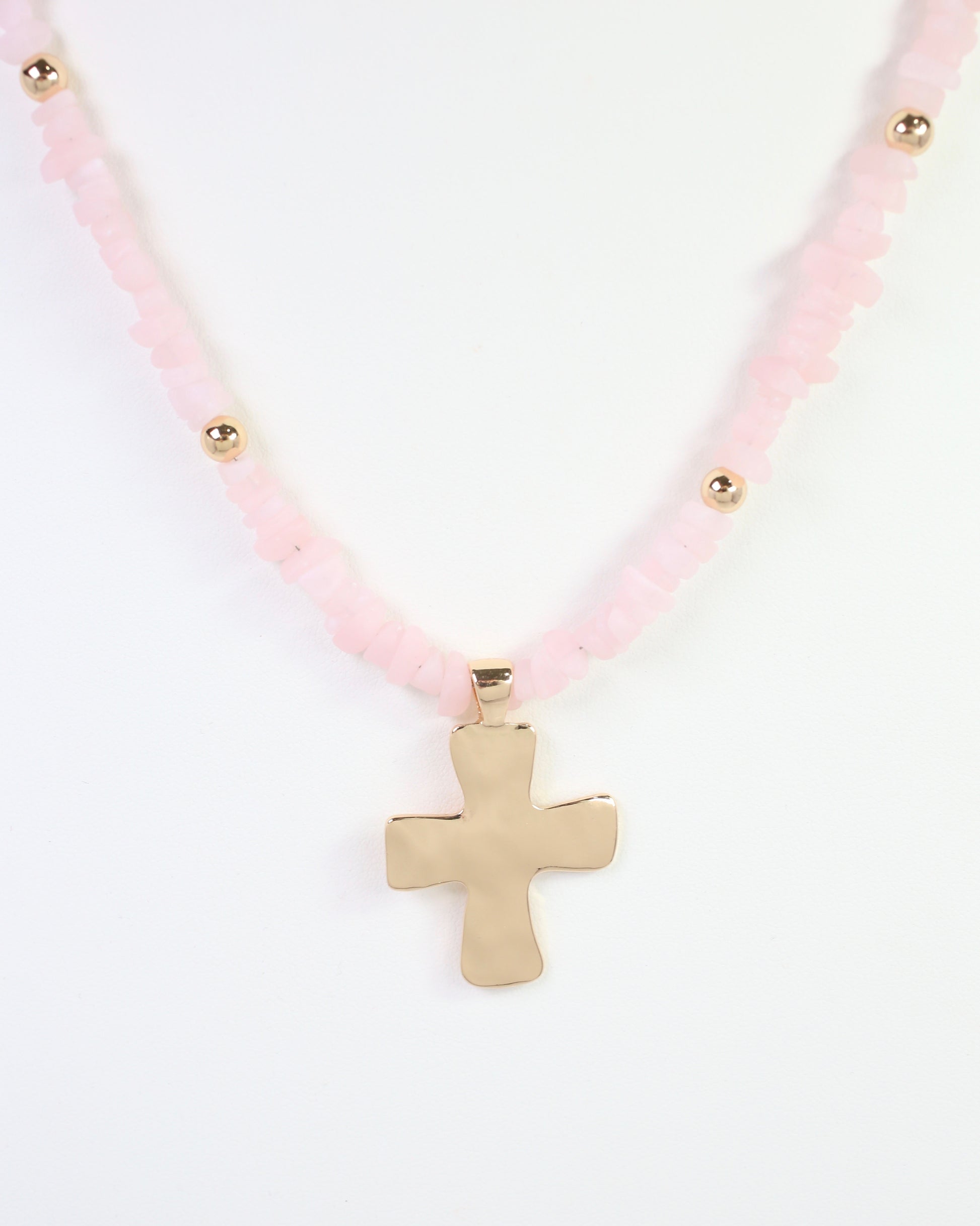 Holland Beaded Cross Necklace Light Pink