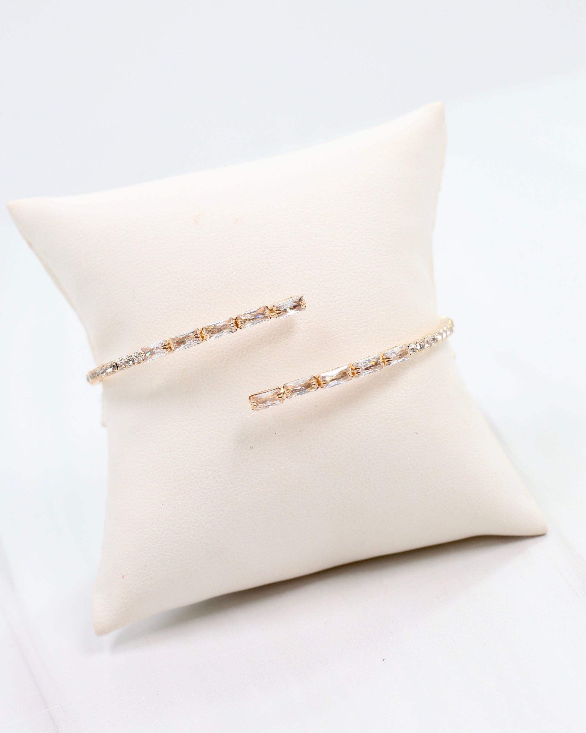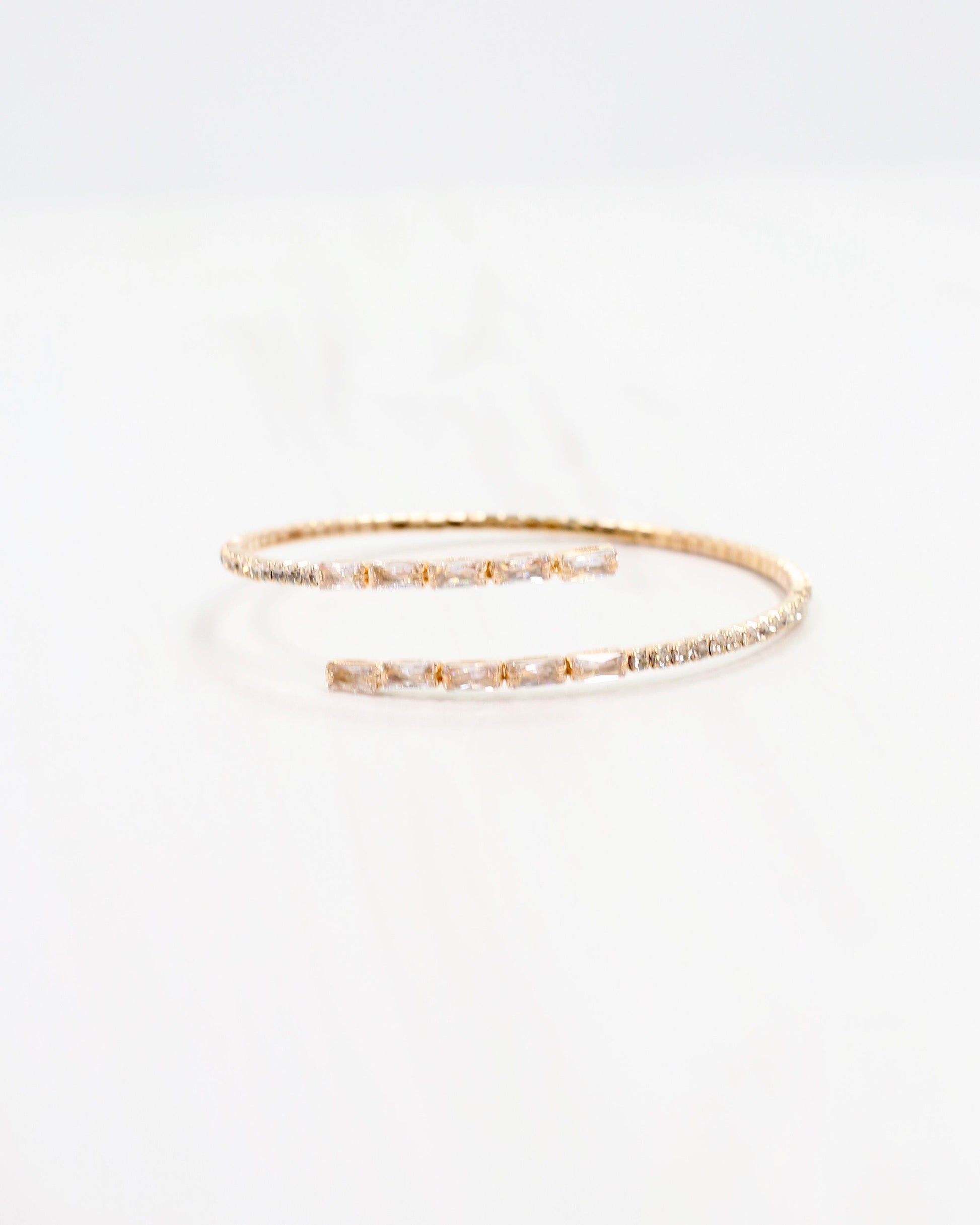 Indulge in the simple elegance of the Hoover CZ Stretch Bracelet in Gold. The stretchy coil design provides effortless wear, while sparkling cz's and rectangular stones add a touch of sophistication. Elevate any outfit with this versatile piece.