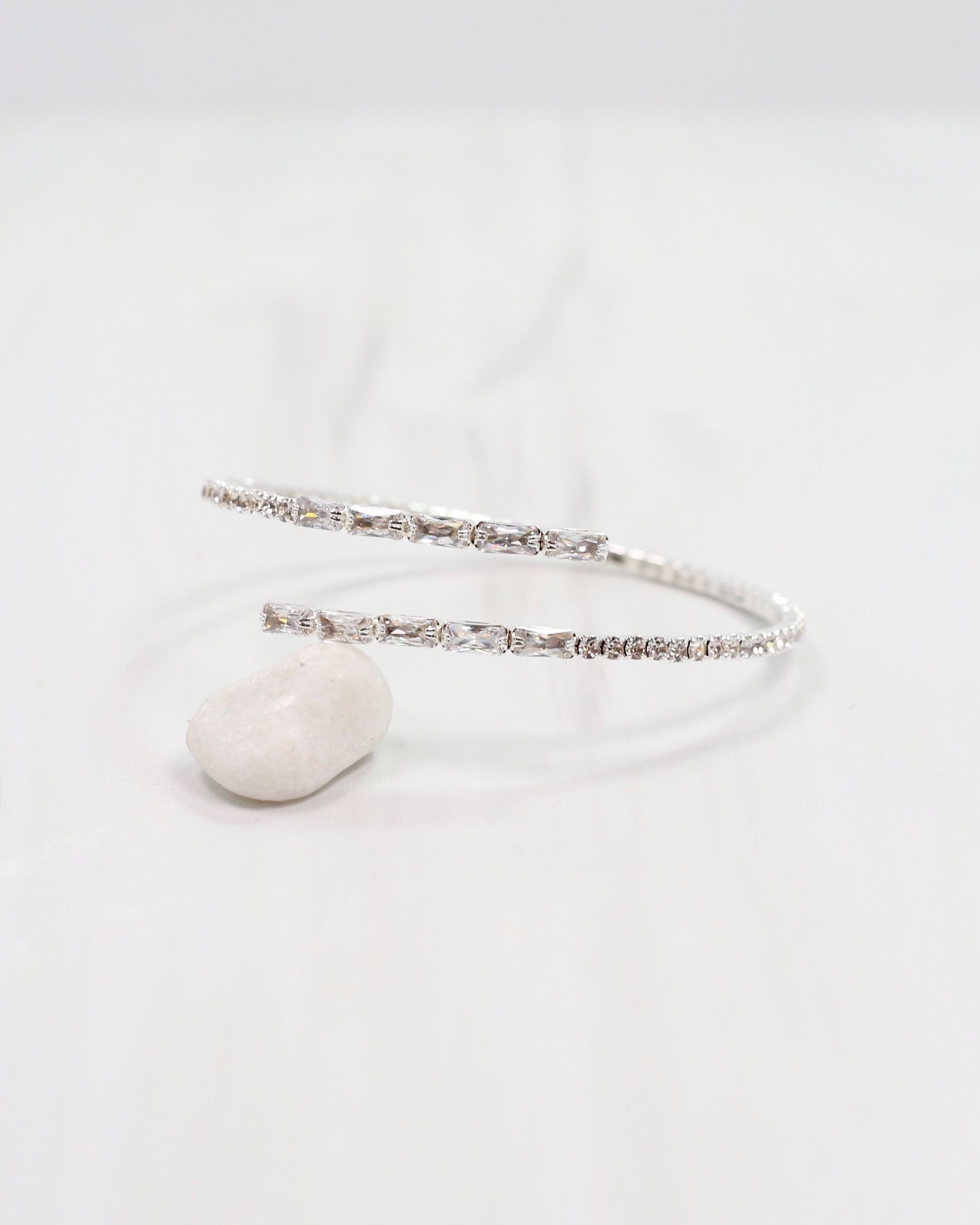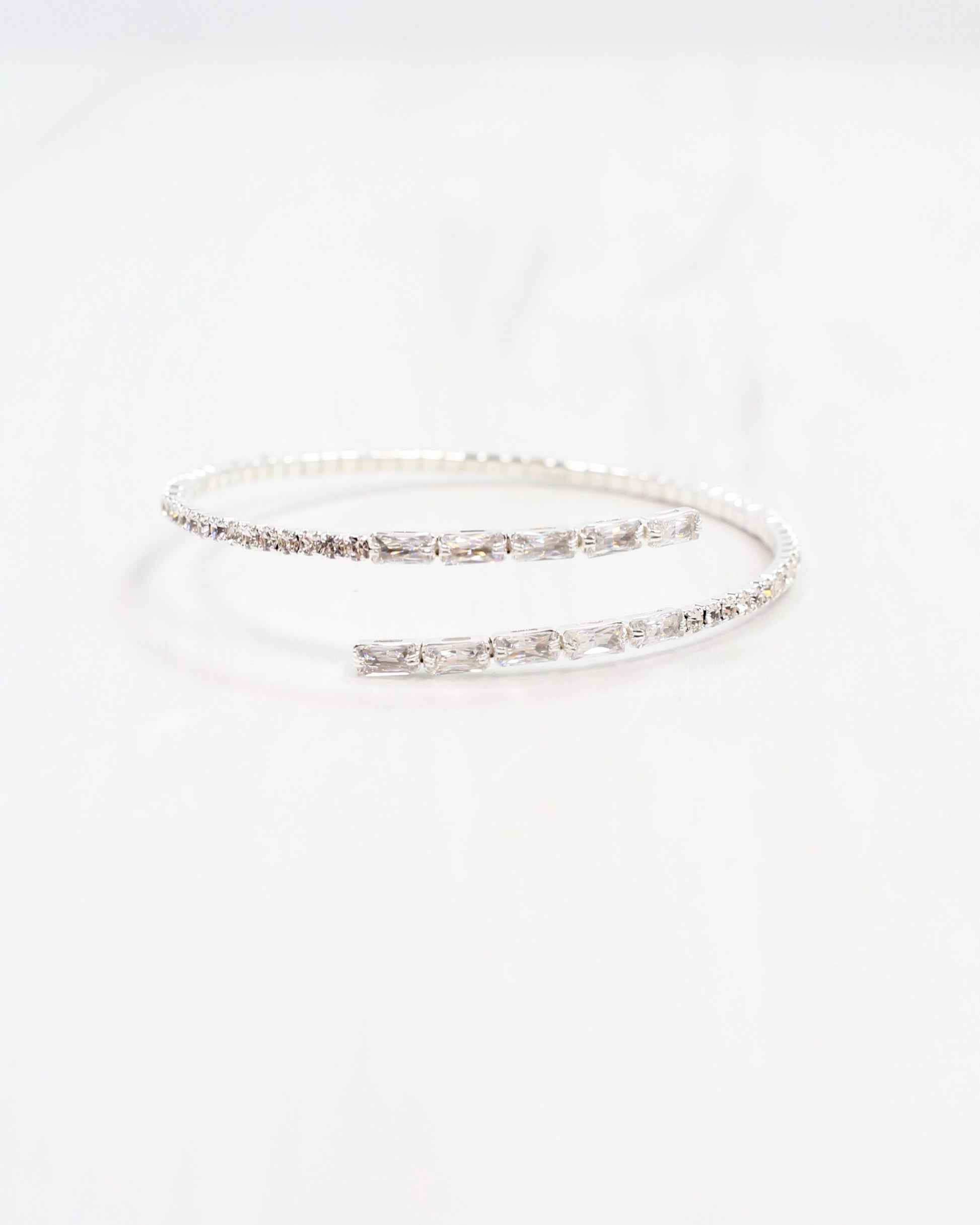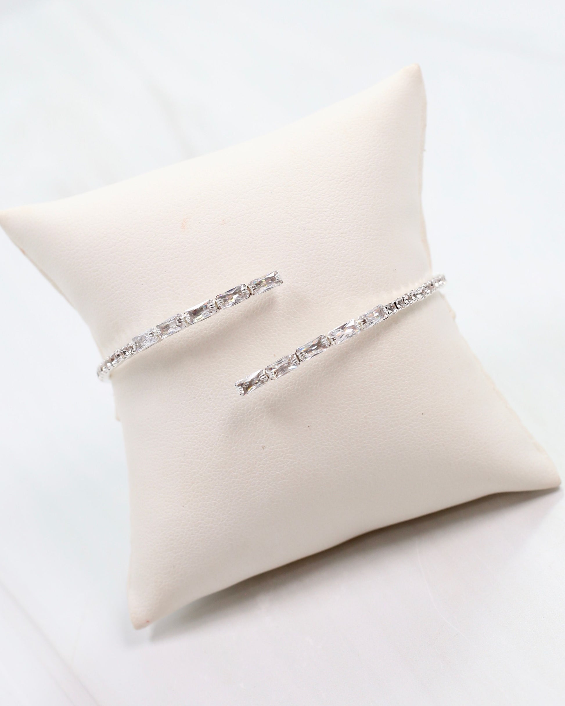 Indulge in the simple elegance of the Hoover CZ Stretch Bracelet in Silver. The stretchy coil design provides effortless wear, while sparkling cz's and rectangular stones add a touch of sophistication. Elevate any outfit with this versatile piece.