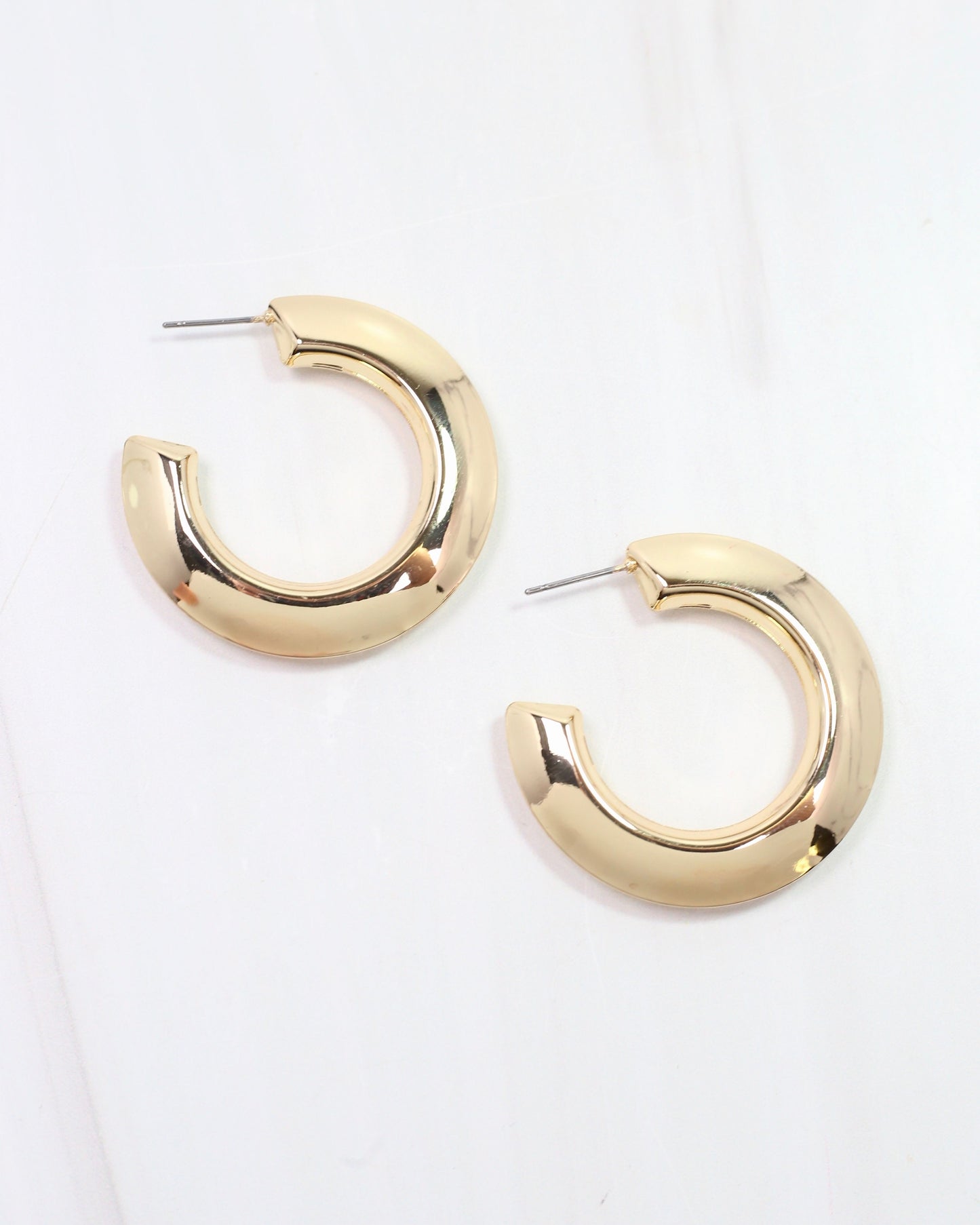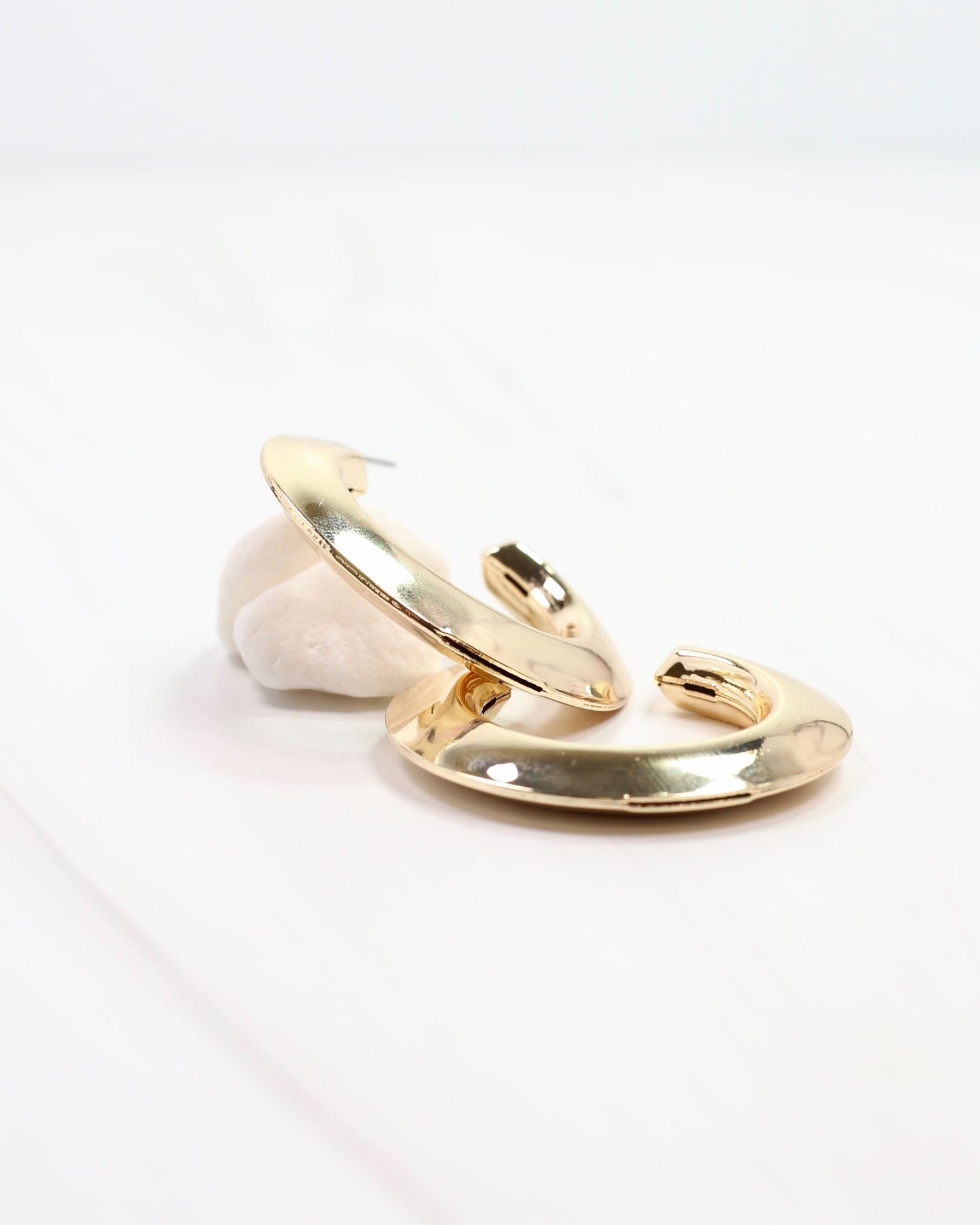 Add a touch of sparkle to your everyday look with the Hopetown Hoop Gold earrings. These shiny, flat hoops are crafted from brass and dipped in gold for a radiant finish that catches the light beautifully. Lightweight and versatile, they’re perfect for adding a playful yet polished vibe to any outfit, day or night.