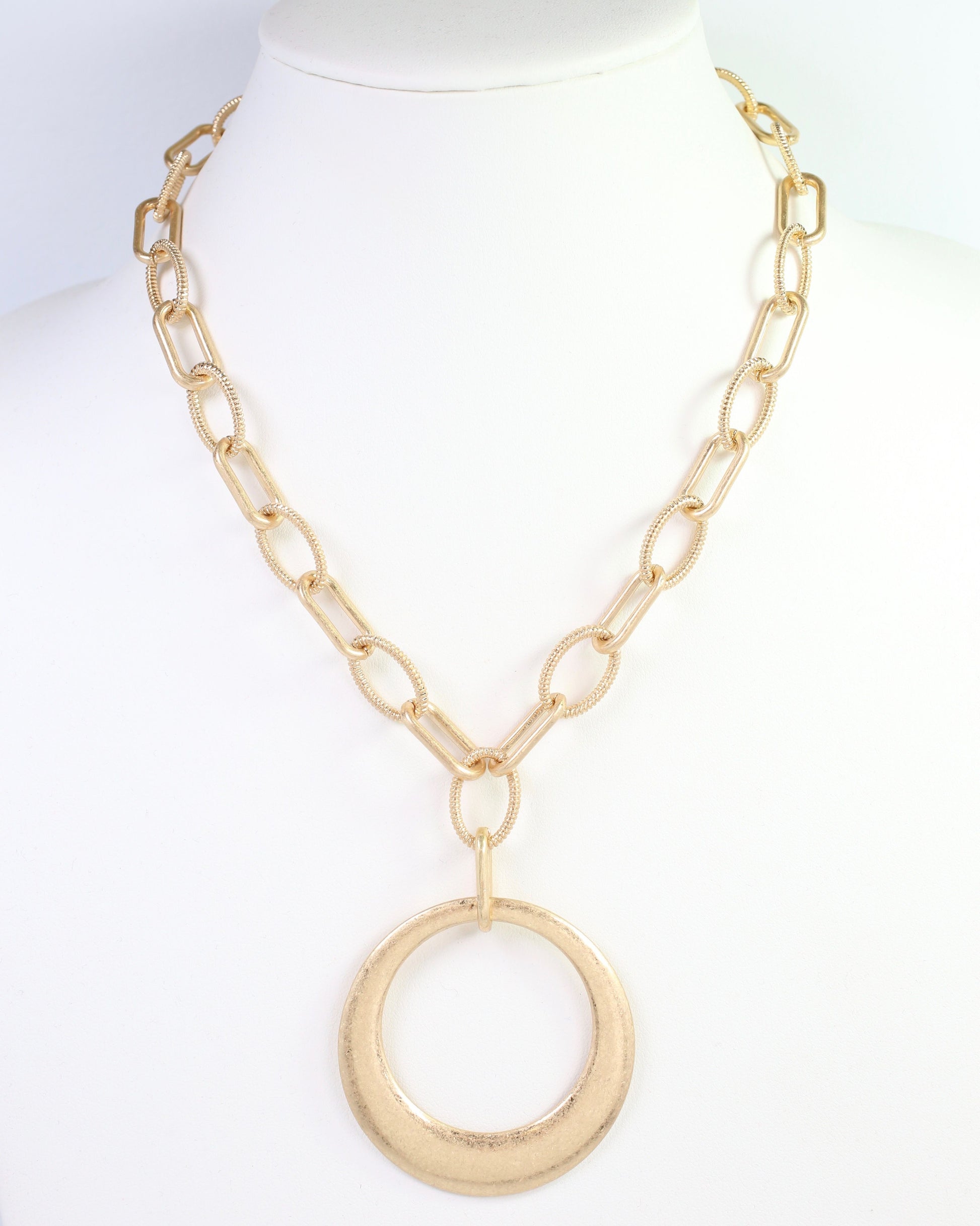Hyattsville Chain Necklace with Circle Pendant Worn Gold