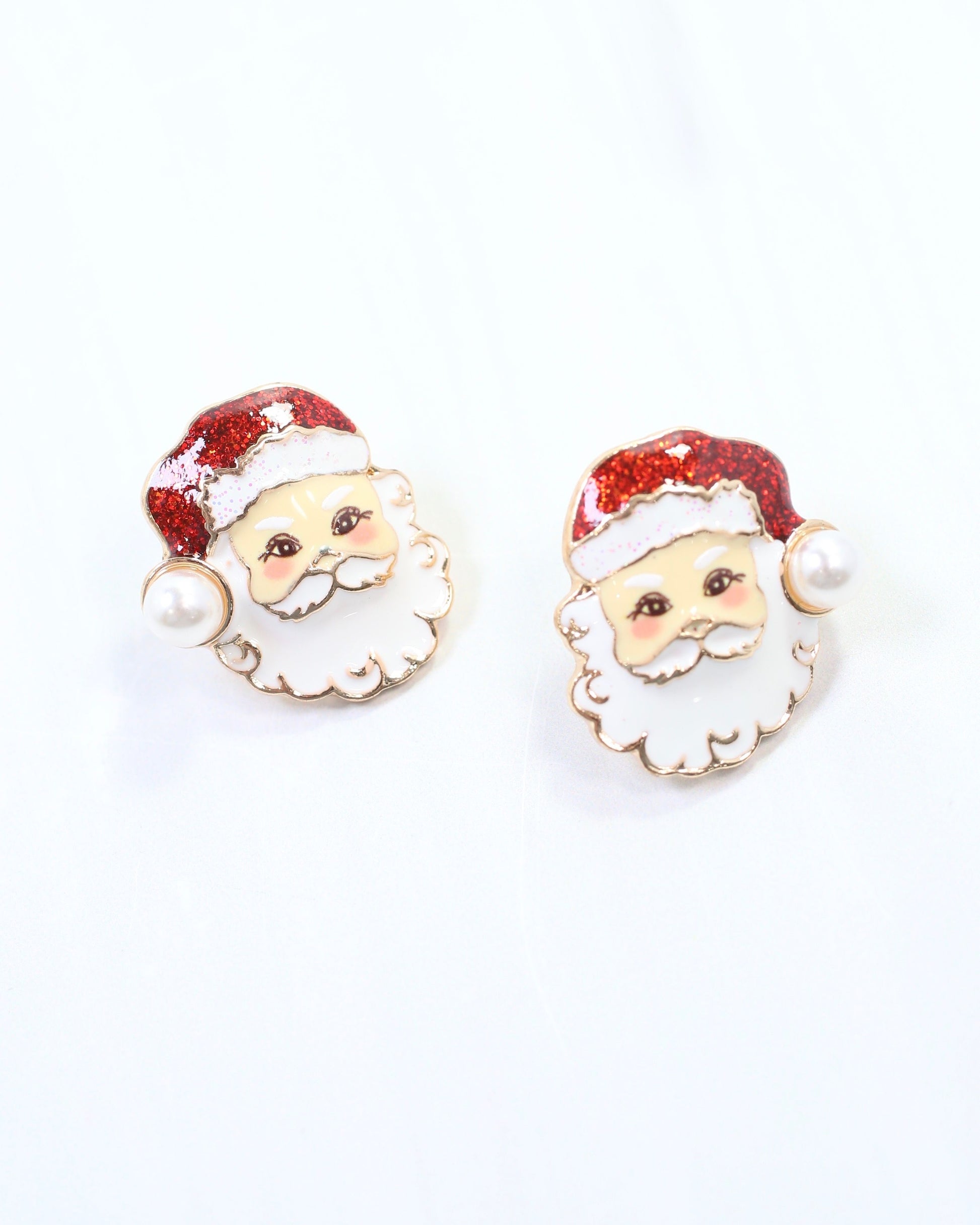Celebrate the season with the I Believe Santa Earring in red. This enamel stud showcases a classic Santa topped with a glittered hat, accented by a delicate pearl dangle. Its playful yet elegant design adds a fashionable festive touch to any outfit.