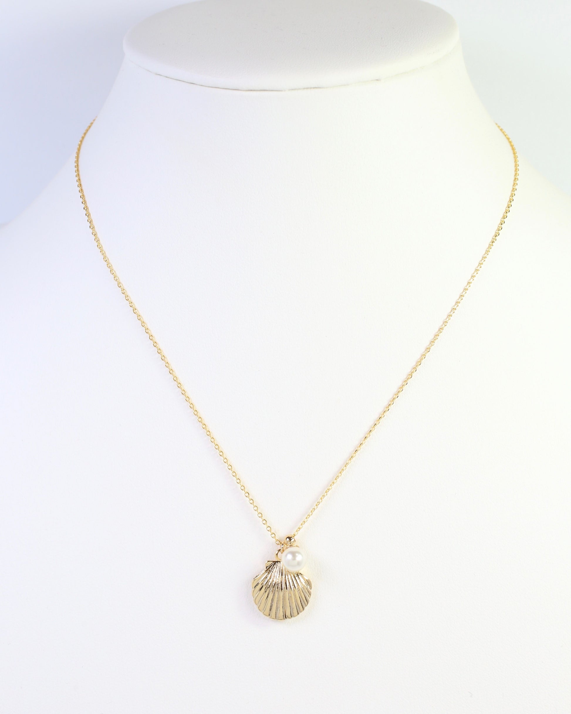 Make waves with the Irvington Shell with Pearl Necklace in gold. This breezy pendant combines a delicate shell design with a lustrous pearl accent for a look that's both coastal and chic. Perfect for beach days or bringing that carefree vibe to your everyday style, it's the ultimate accessory for those who love a touch of ocean-inspired elegance. Layer it or wear it solo—either way, you're bringing the good vibes.