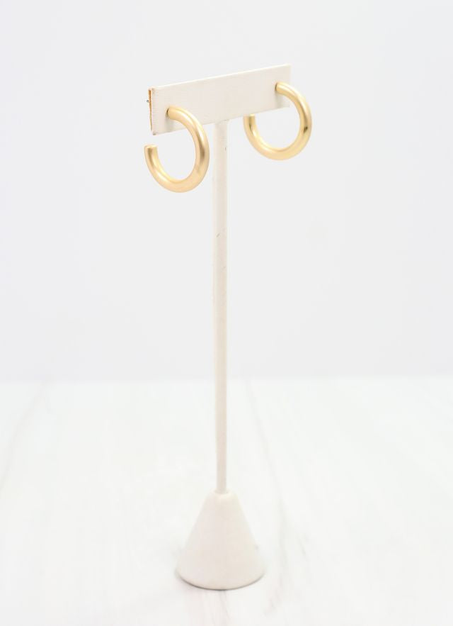 This basic hoop earring has a matte finish on a post back. It's a great size that can be worn casually or dressy.