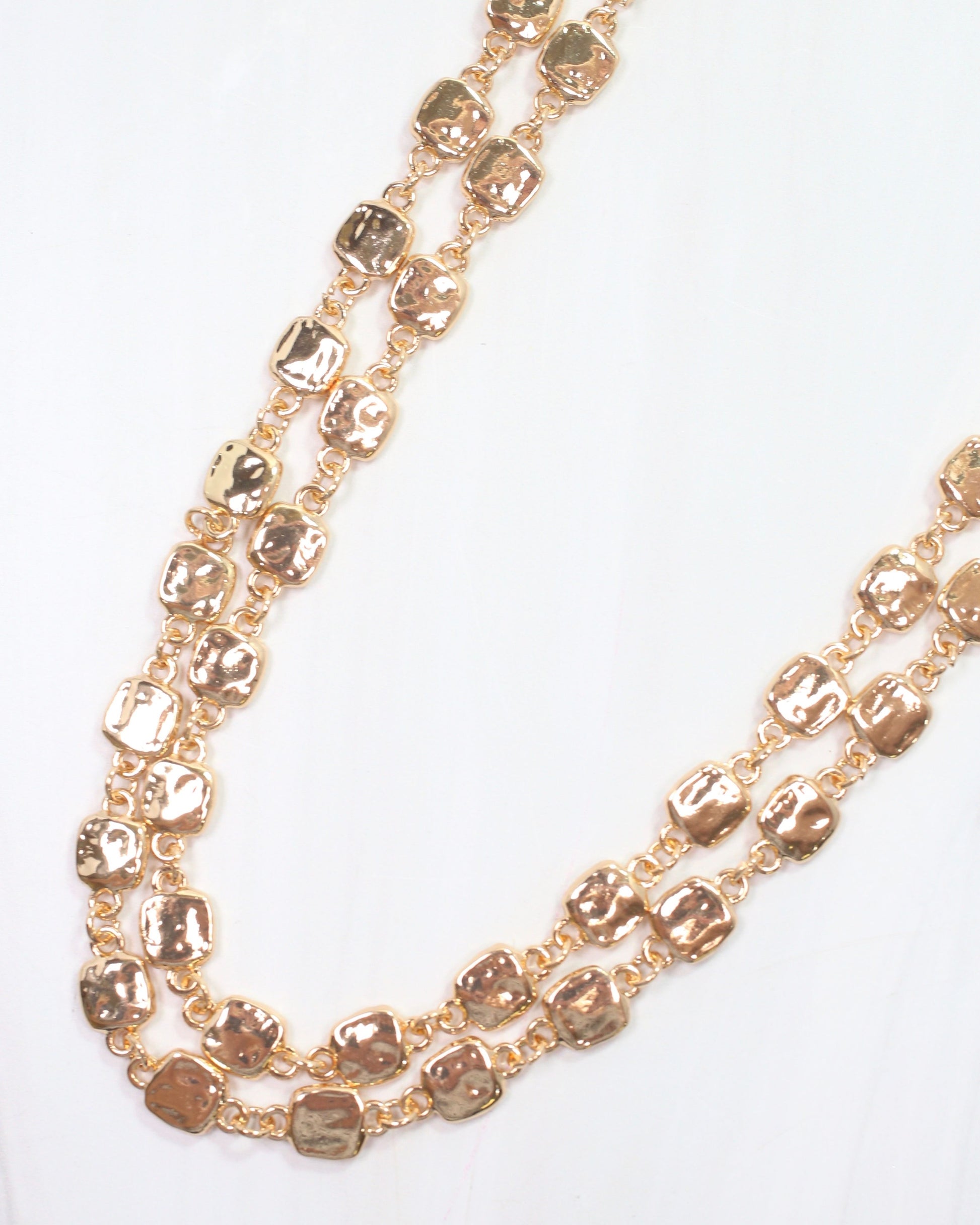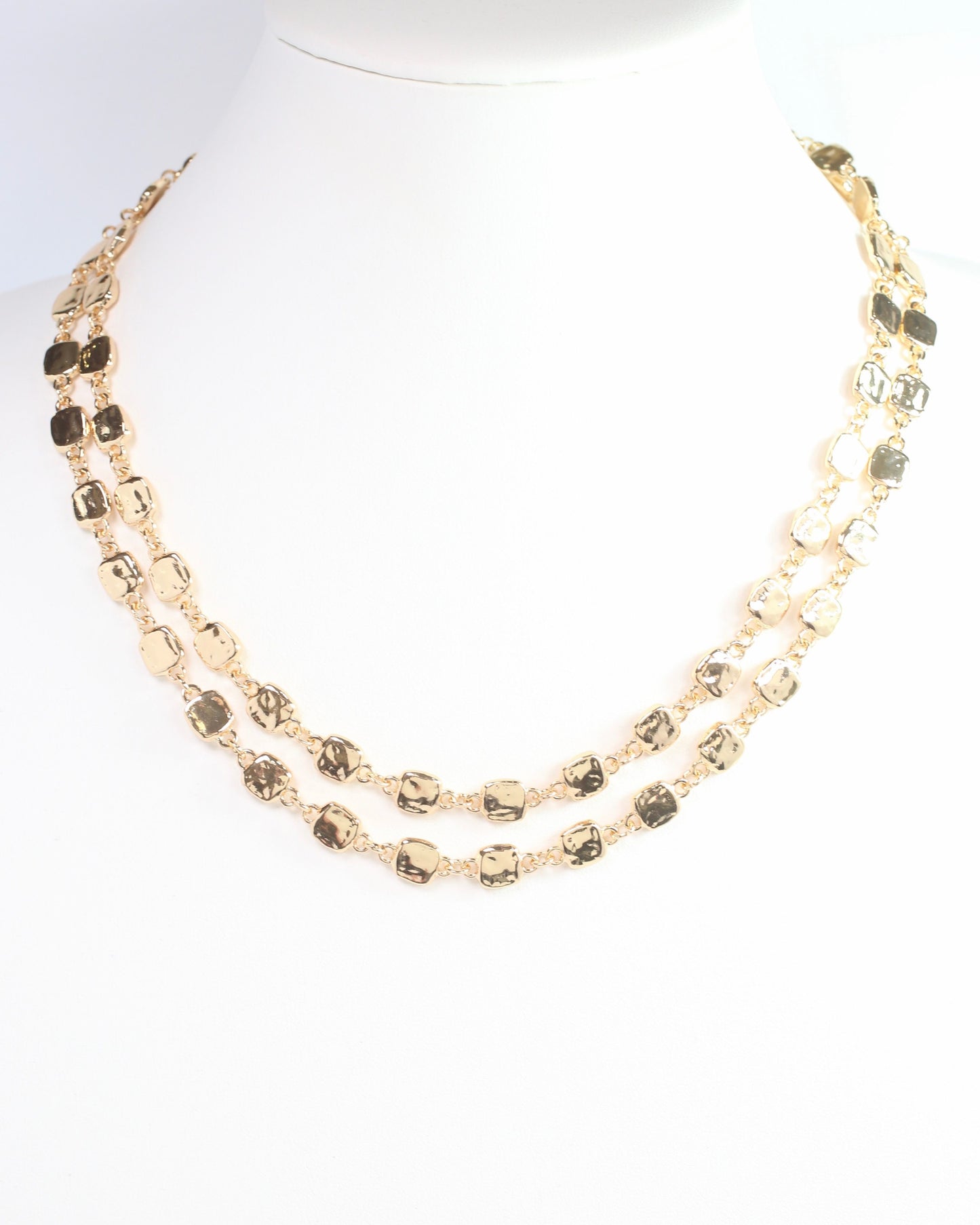 Add a touch of elegance to your summer wardrobe with the Jackie Layered Necklace in Gold. Featuring interlocking gold rounded squares, this playful two-layered necklace is perfect for any occasion. Elevate your style and stand out from the crowd!