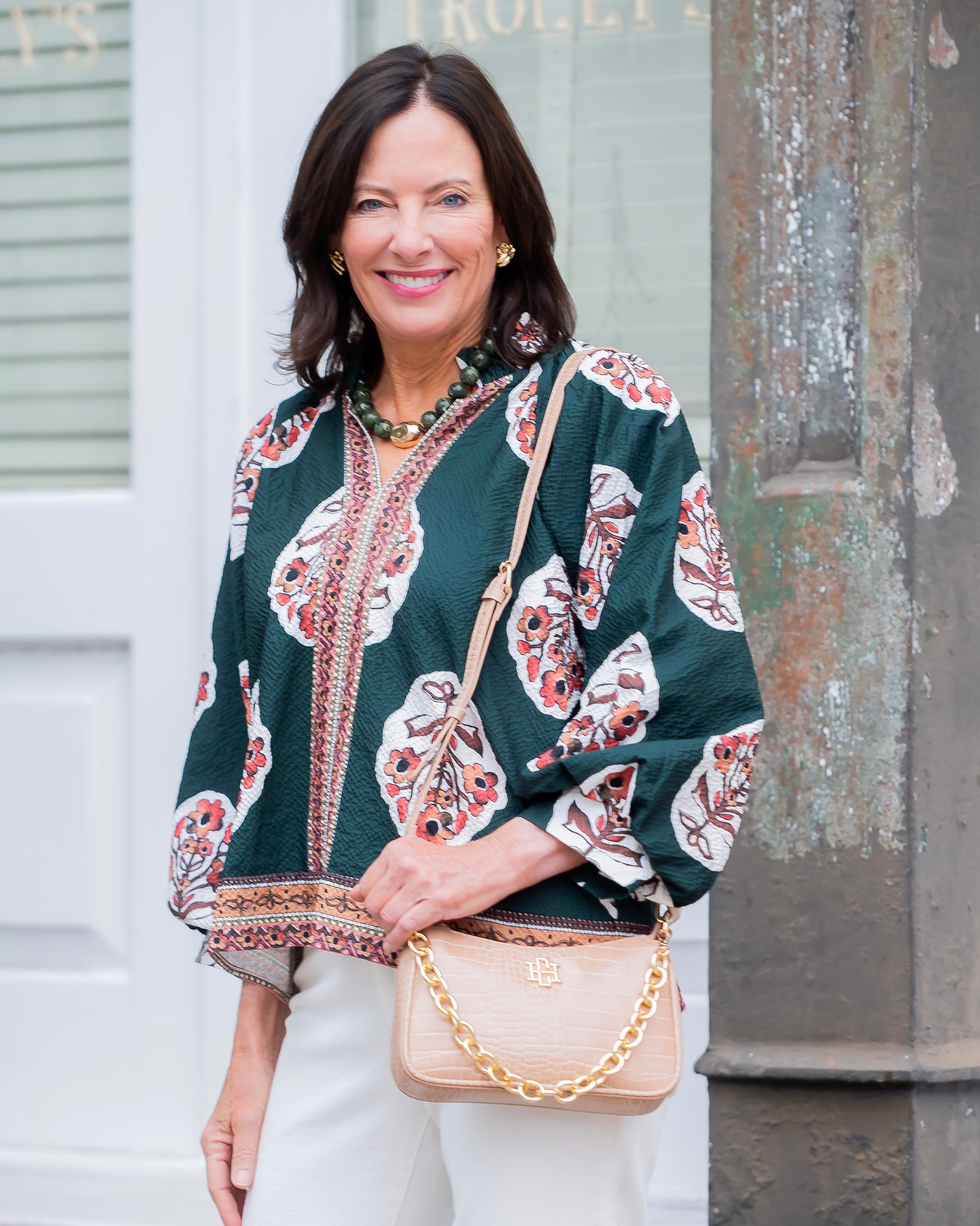 This fabulous vegan leather crossbody is a wonderful size for travel and everyday wearing! It is made with a embossed, vegan leather that is oh so luxurious. There is a removable chain accent that can also be used as a carrying strap as well. The crossbody strap is adjustable and removable as well. It features the Caroline Hill logo on one side and has a top zipper closure. The interior of the bag has a zippered pocket and two short open pockets as well.