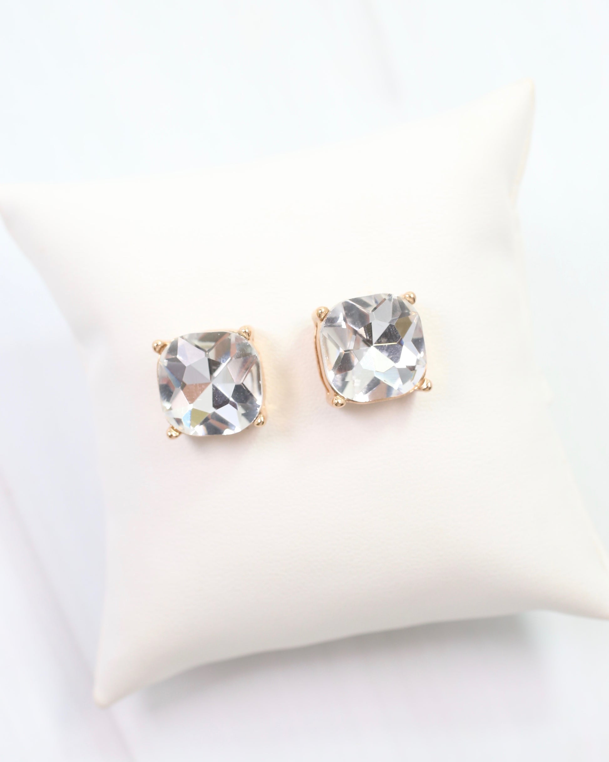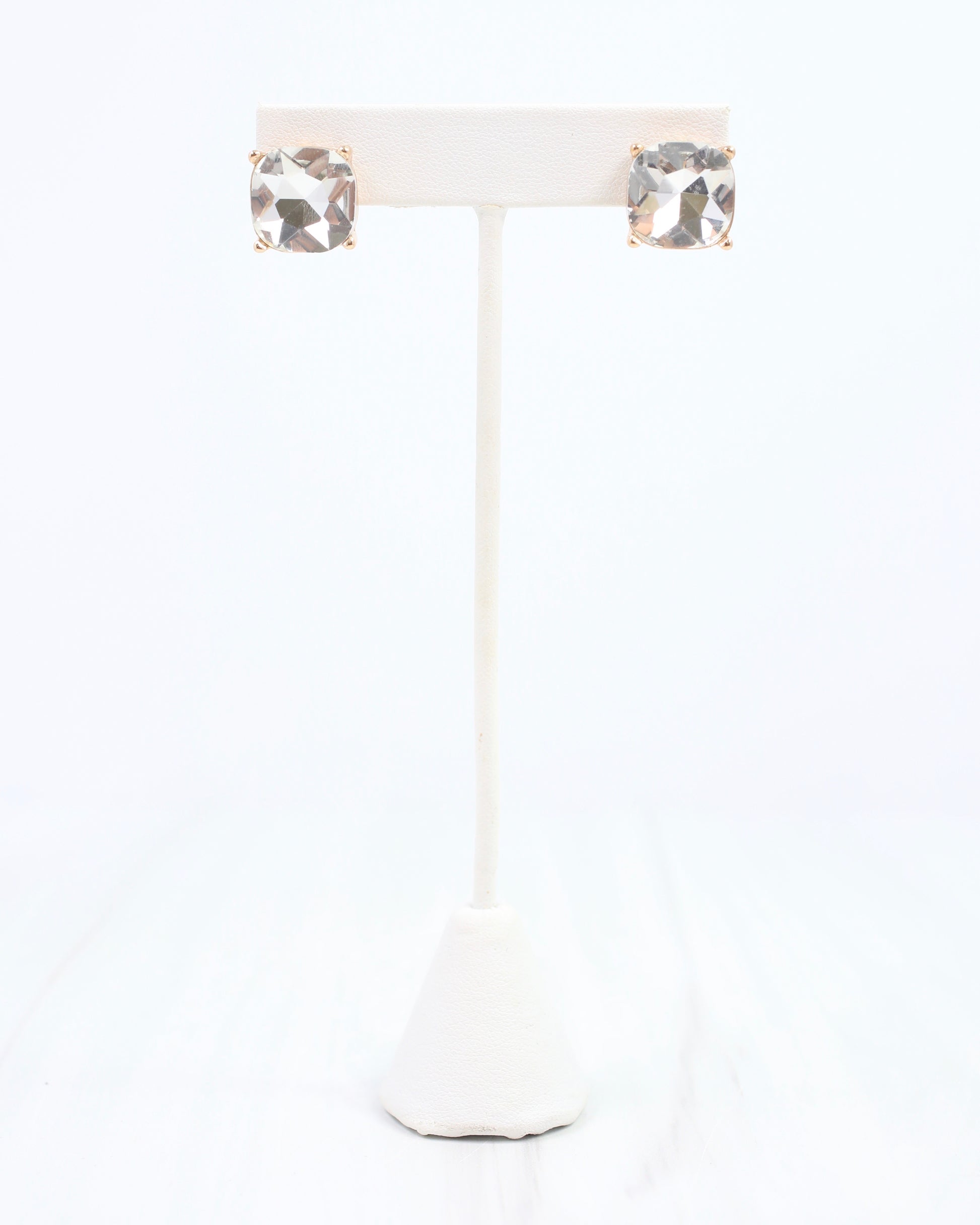 Elevate your style with these Julien Stone Stud Earrings in clear sparkle. Their versatile design complements everything from casual jeans to elegant black-tie attire, making them a chic addition to any outfit. Add a touch of refined shimmer to enhance your look effortlessly.