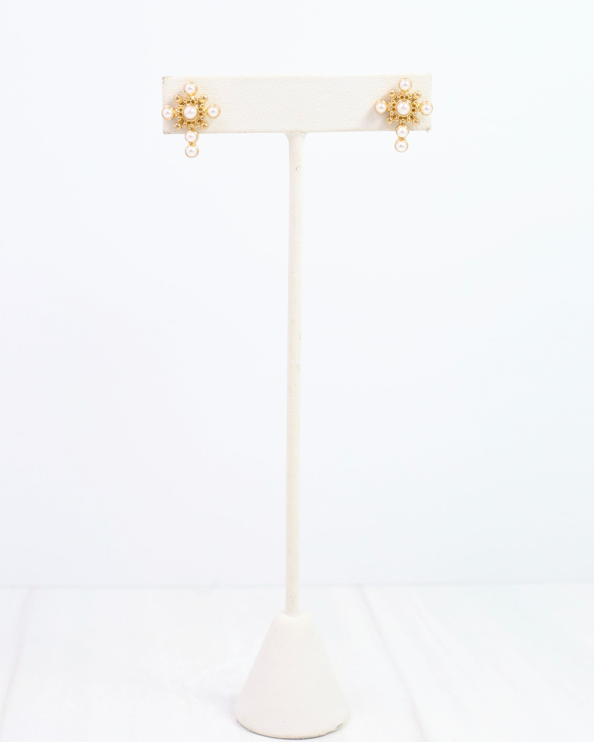 Add a touch of vintage charm with the Kallie Cross Stud Earring in Worn Gold. This intricate stud features a delicate cross design accented with tiny pearls, giving it a timeless yet playful vibe. Perfect for adding subtle sparkle and character to any outfit!
