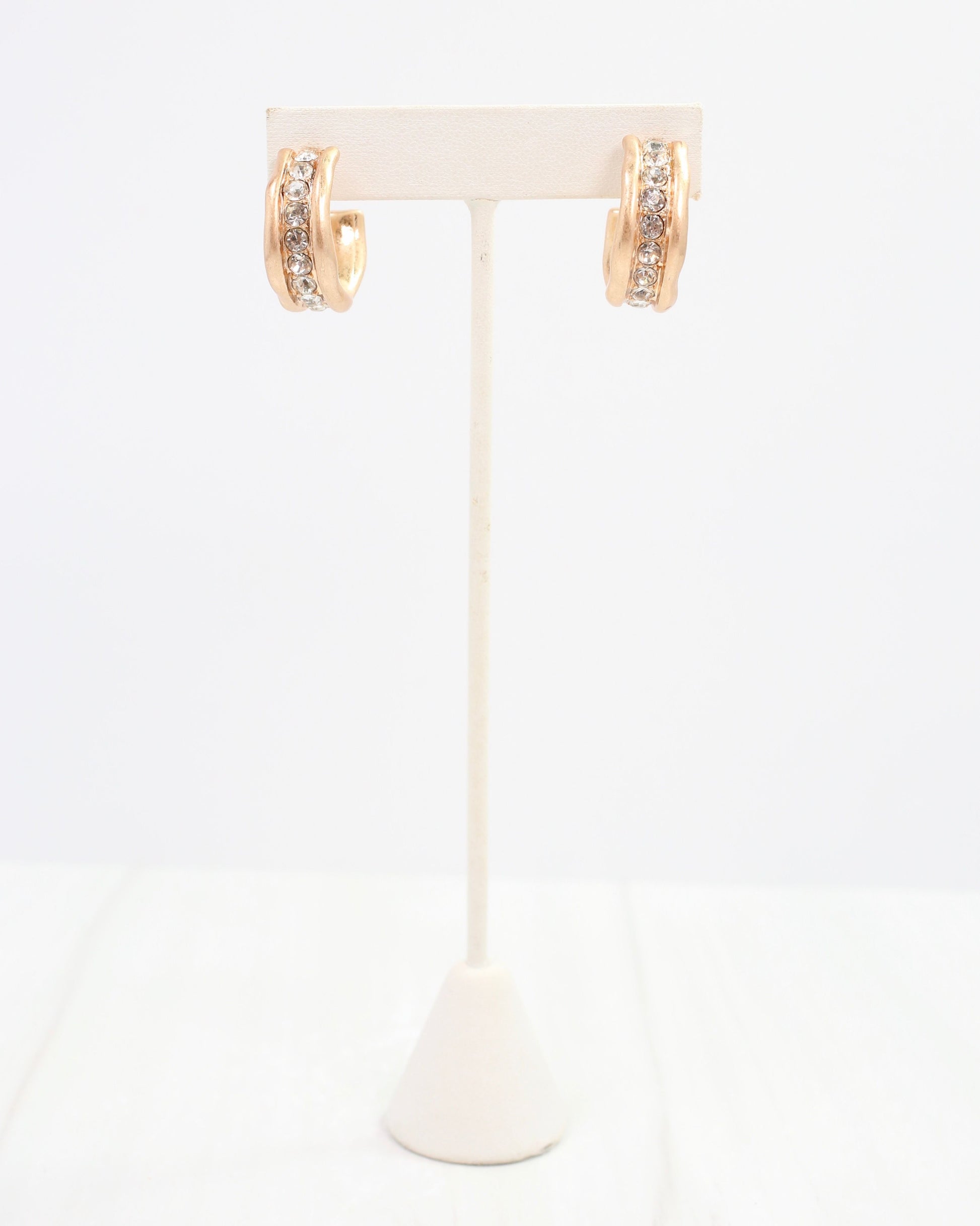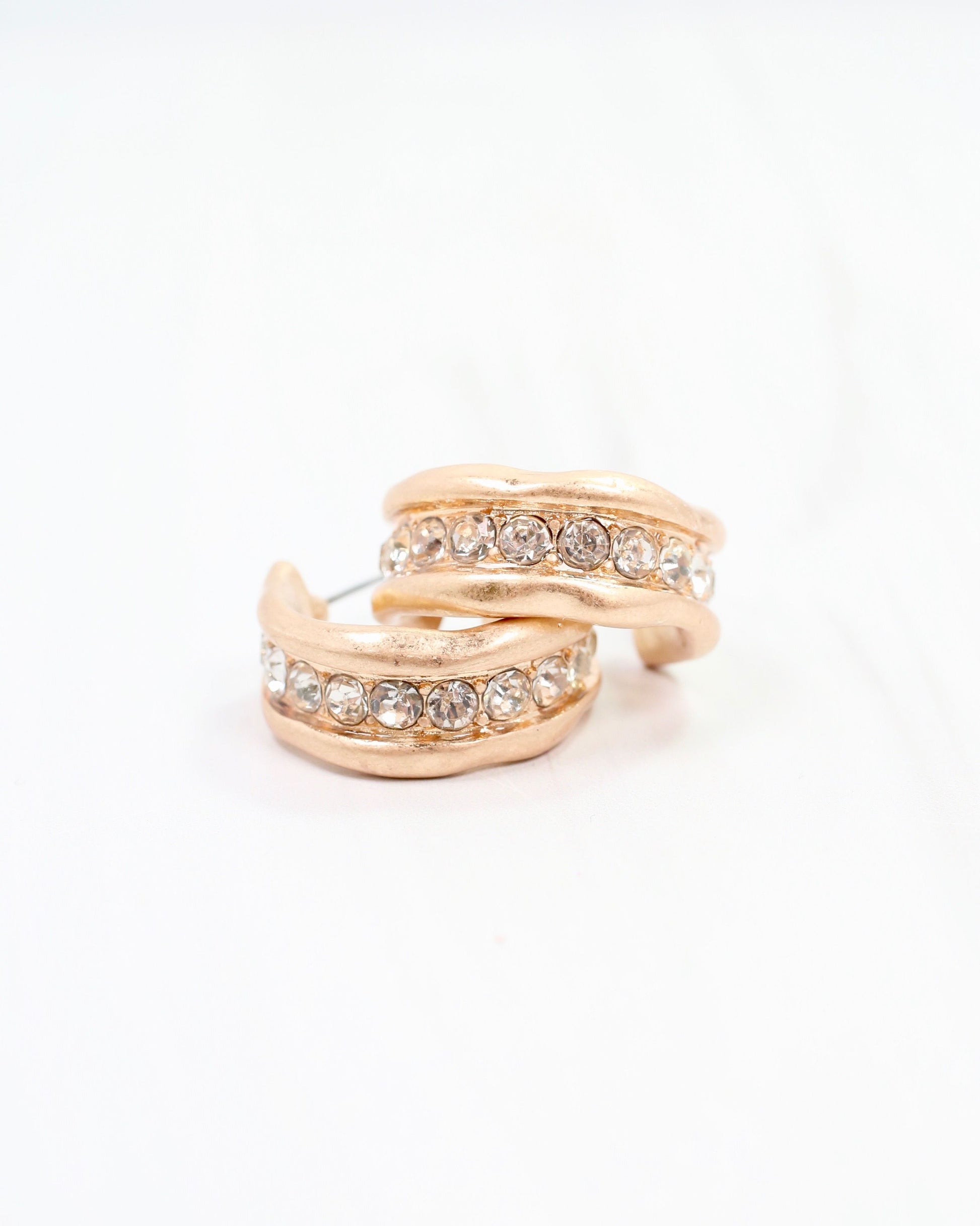 Get the elevated fashion look with the Katarina Hoop Earring in Worn Gold! These hoops feature a unique petite crystal strip down the middle, adding a touch of elegance to any outfit. From casual to formal, these earrings are versatile and easy to style.
