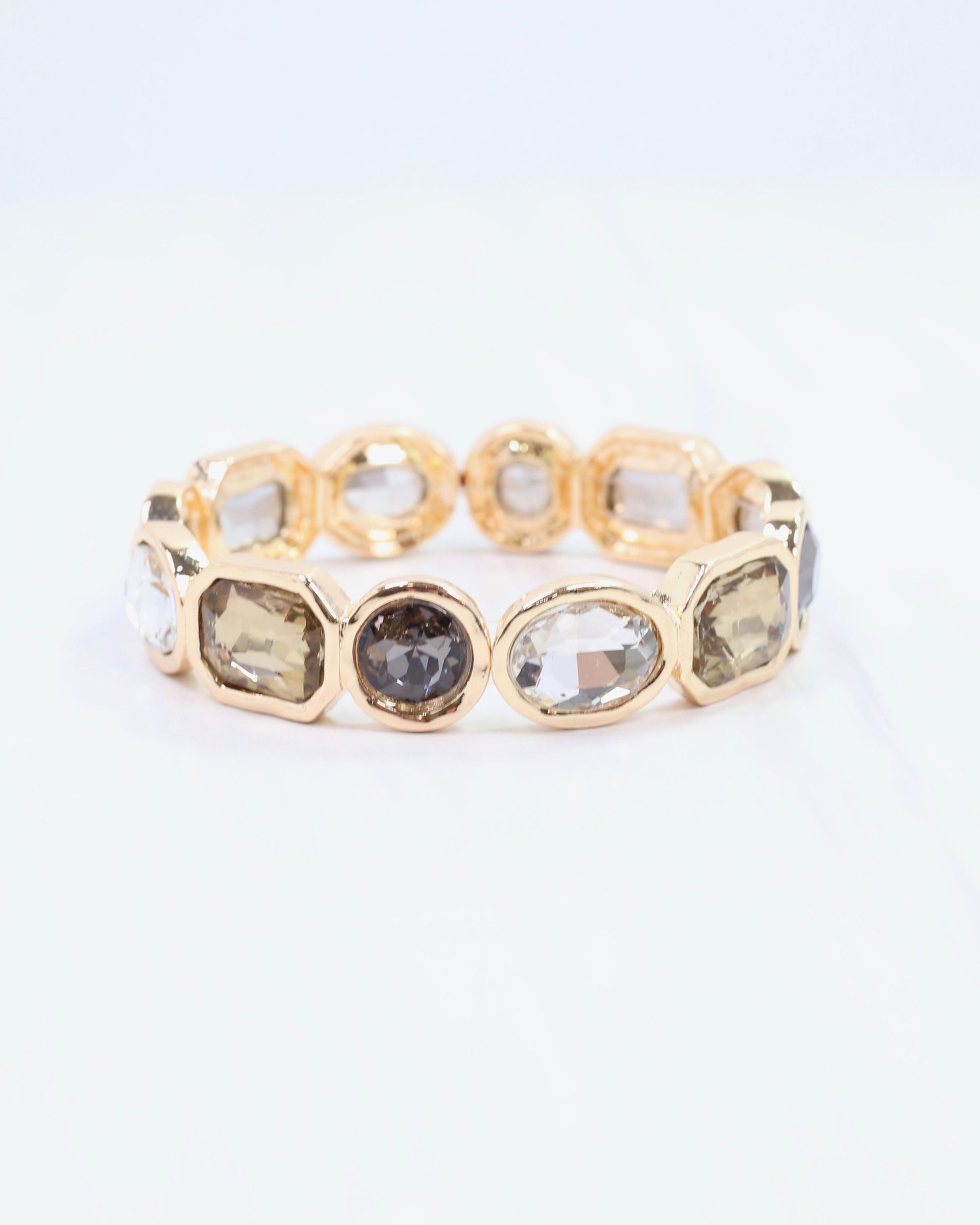 Add a touch of sparkle with the Lambert Stretch Bracelet in Black Diamond. Featuring a playful mix of black diamond, topaz, and clear stones in various shapes, this gold-trimmed stretch bracelet effortlessly fits most wrists. Perfect for adding a dash of glam to any outfit!