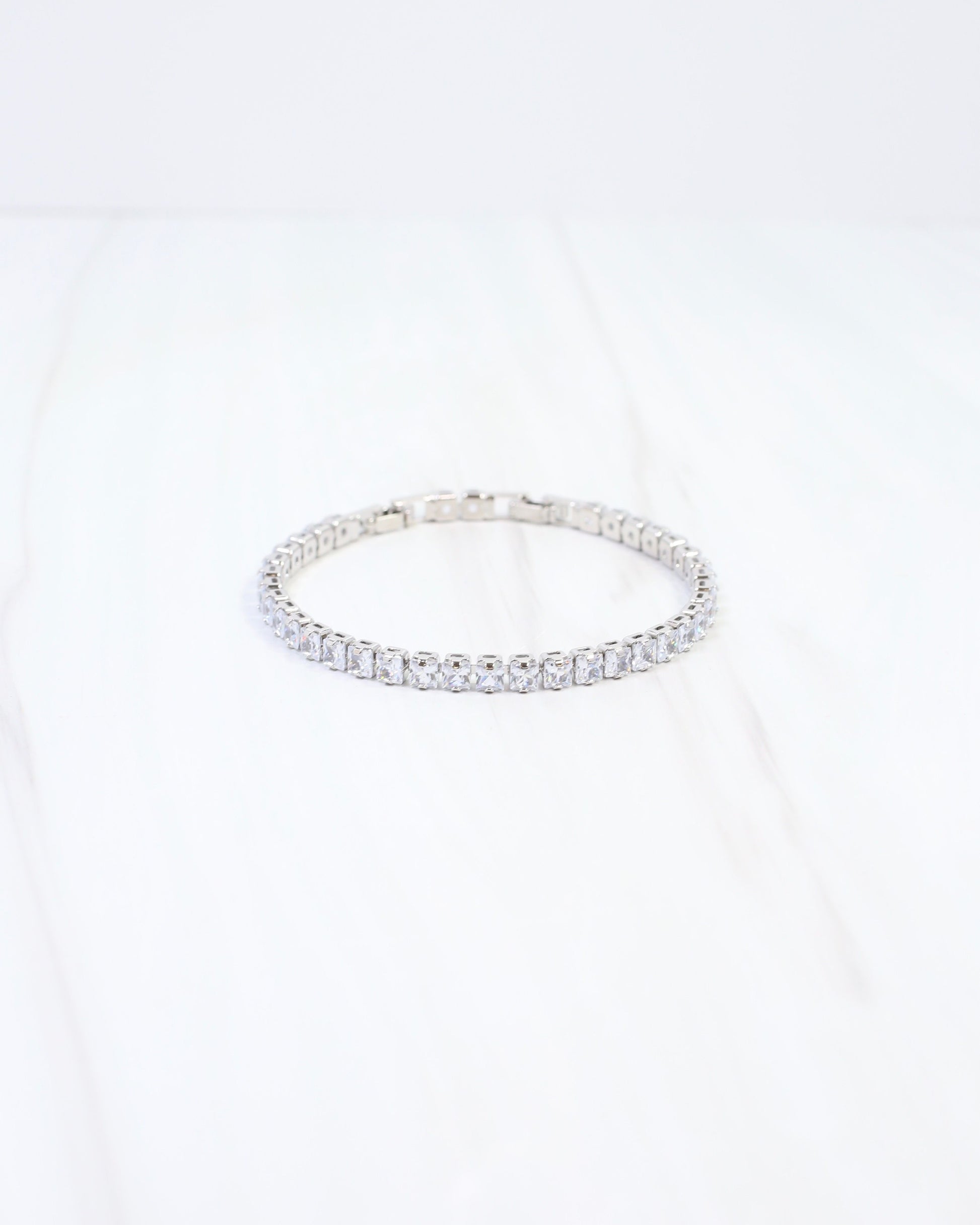 Elevate your wrist game with the Laurel Tennis Bracelet in gleaming silver. This classic stunner features a continuous line of brilliant stones that sparkle with every movement, making it the ultimate statement piece for any occasion. Whether you're dressing up or keeping it casual, this timeless bracelet delivers pure radiance and sophistication.