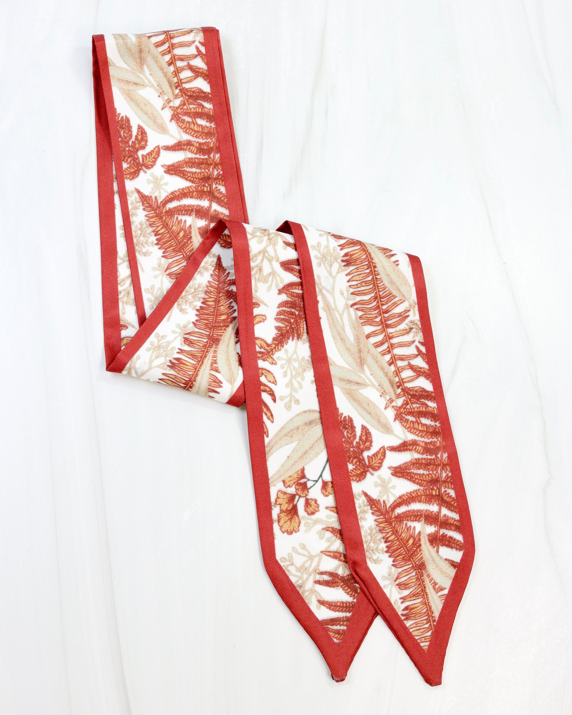 Elevate your style with the Lillie Scarf in Rust Beige, a versatile accessory perfect for tying on your purse, crafting a unique necklace, or styling any way you desire. This chic scarf adds a trendy touch to any outfit, making it an essential piece for fashion-forward looks.