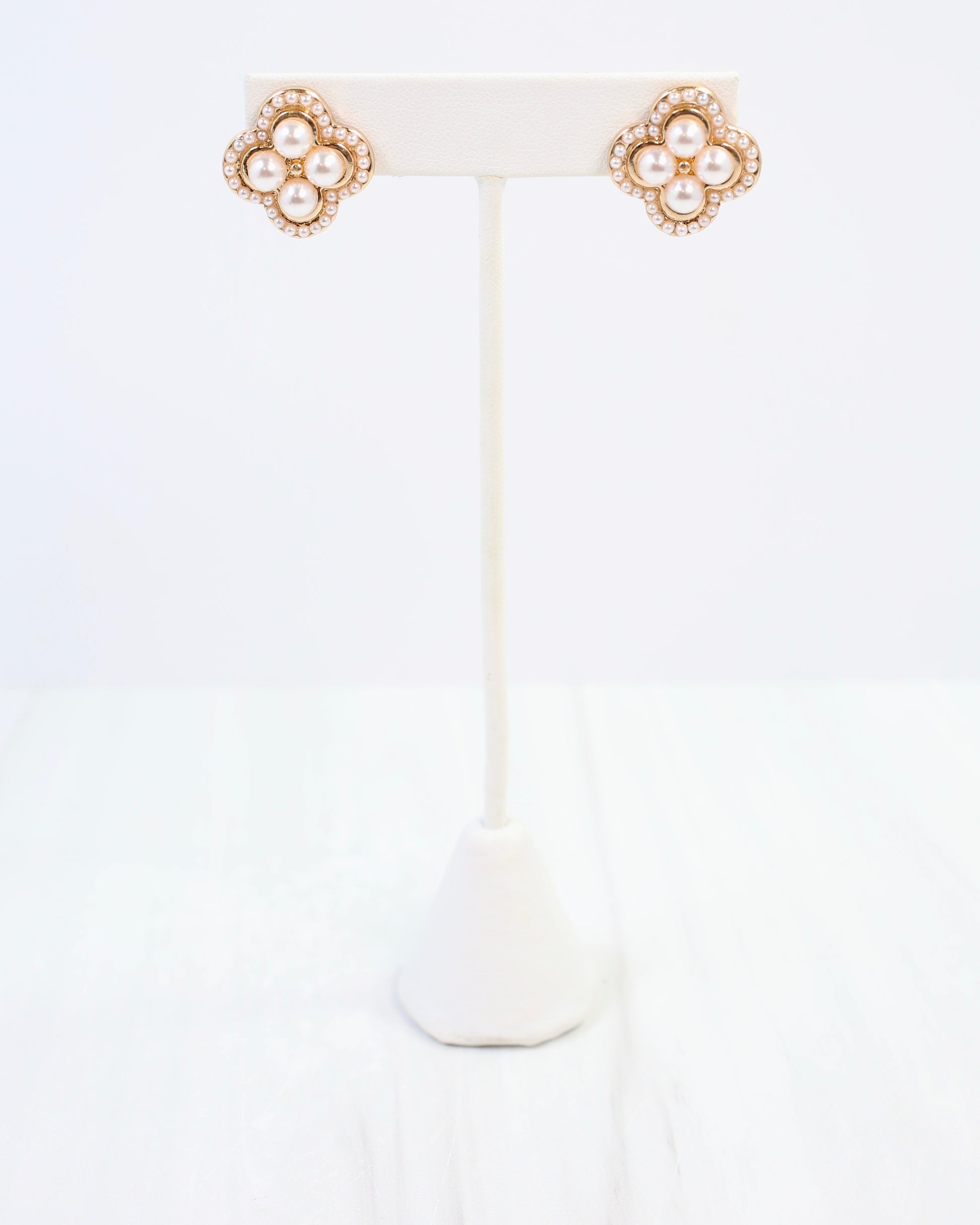 The Lindell Pearl Stud Earring in Cream combines elegance with a fashionable edge through its delicate clover shape. These refined pearl studs bring a subtle yet stylish touch to your look, making them perfect for both everyday sophistication and special events.