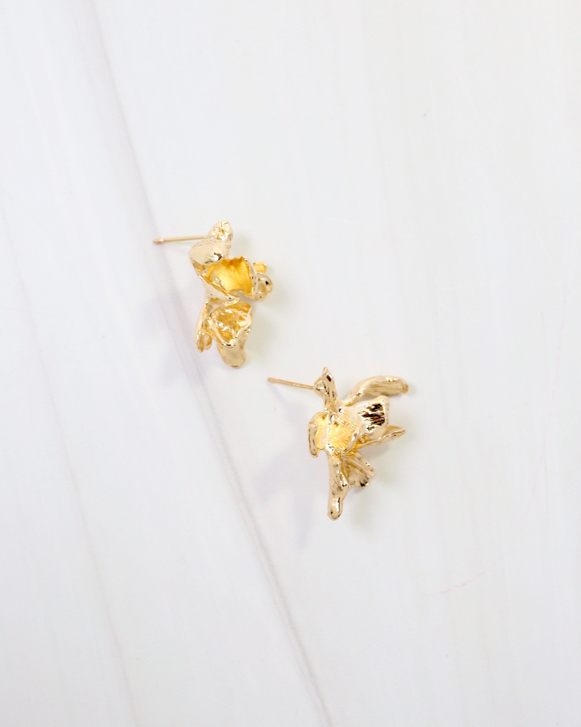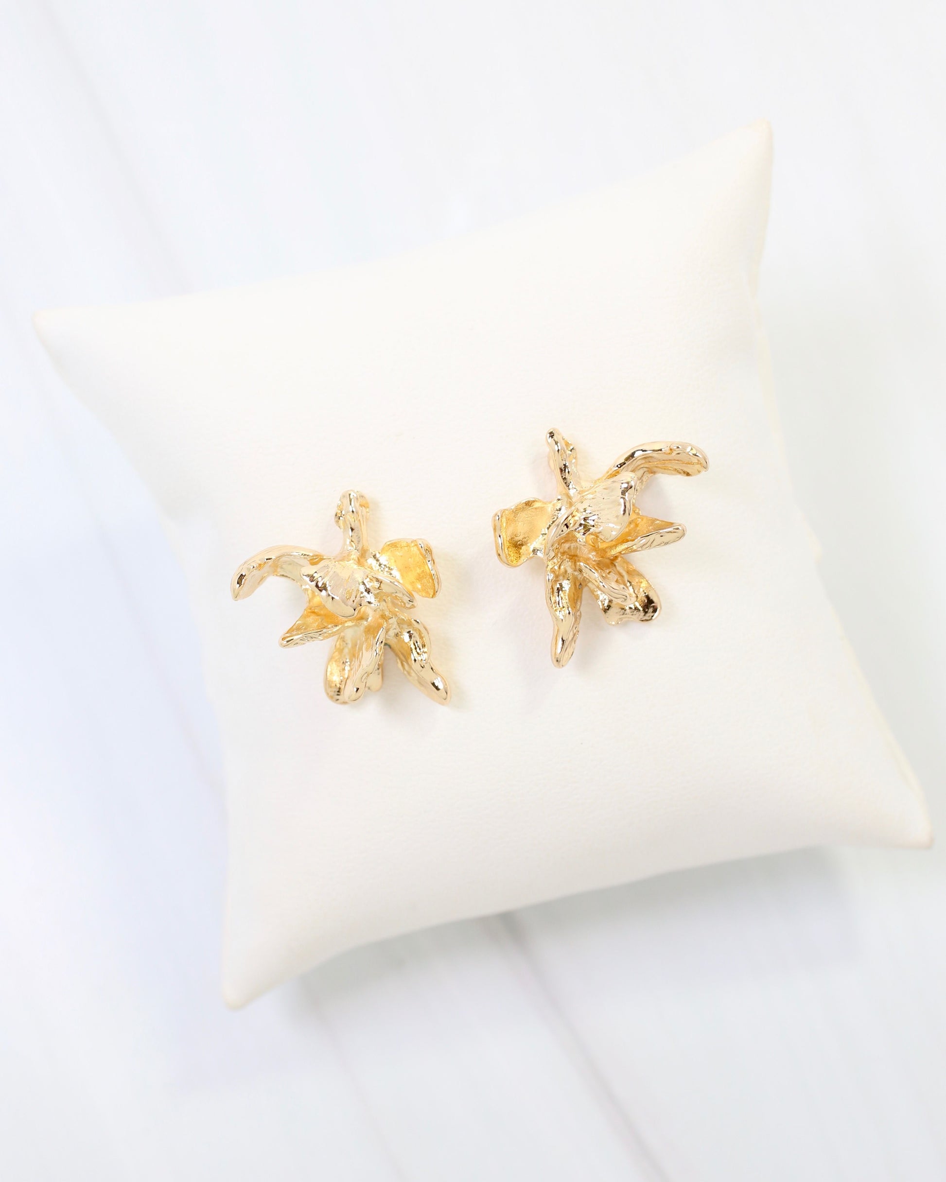 Embrace natural beauty with the Long Branch Textured Flower Earrings in gold. These botanical-inspired studs showcase an intricate floral design with tactile surface detailing that adds depth and visual interest. The rich gold finish brings warmth to your complexion while the textured petals catch light beautifully throughout the day. Versatile enough for everyday wear yet elegant enough for special occasions, these earrings are a timeless addition to any jewelry wardrobe.