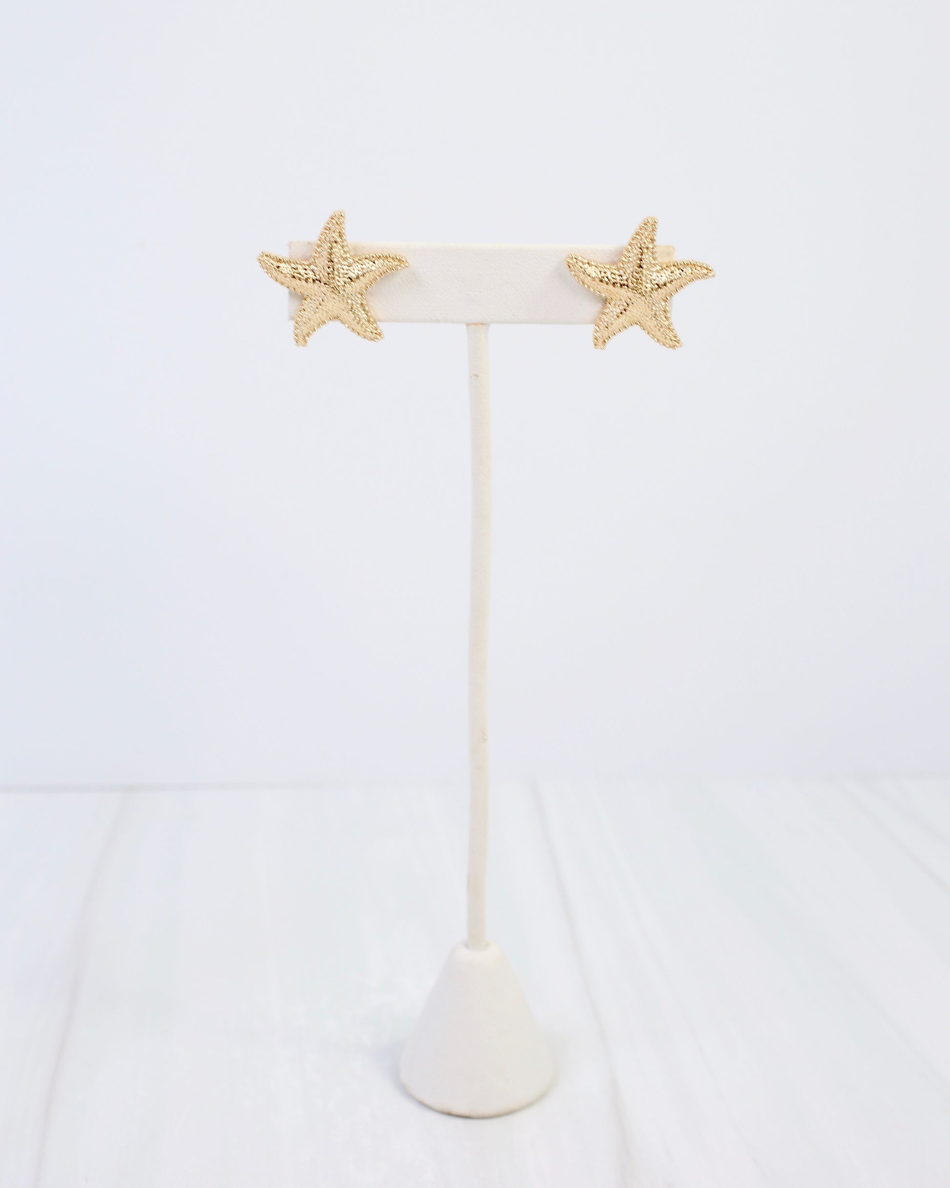 Make a splash with the Maris Starfish Post Earrings in gold. These playful studs capture the whimsical charm of the ocean with their adorable starfish design, all wrapped in warm gold tones. Fun, flirty, and perfect for adding a touch of seaside personality to your everyday look.