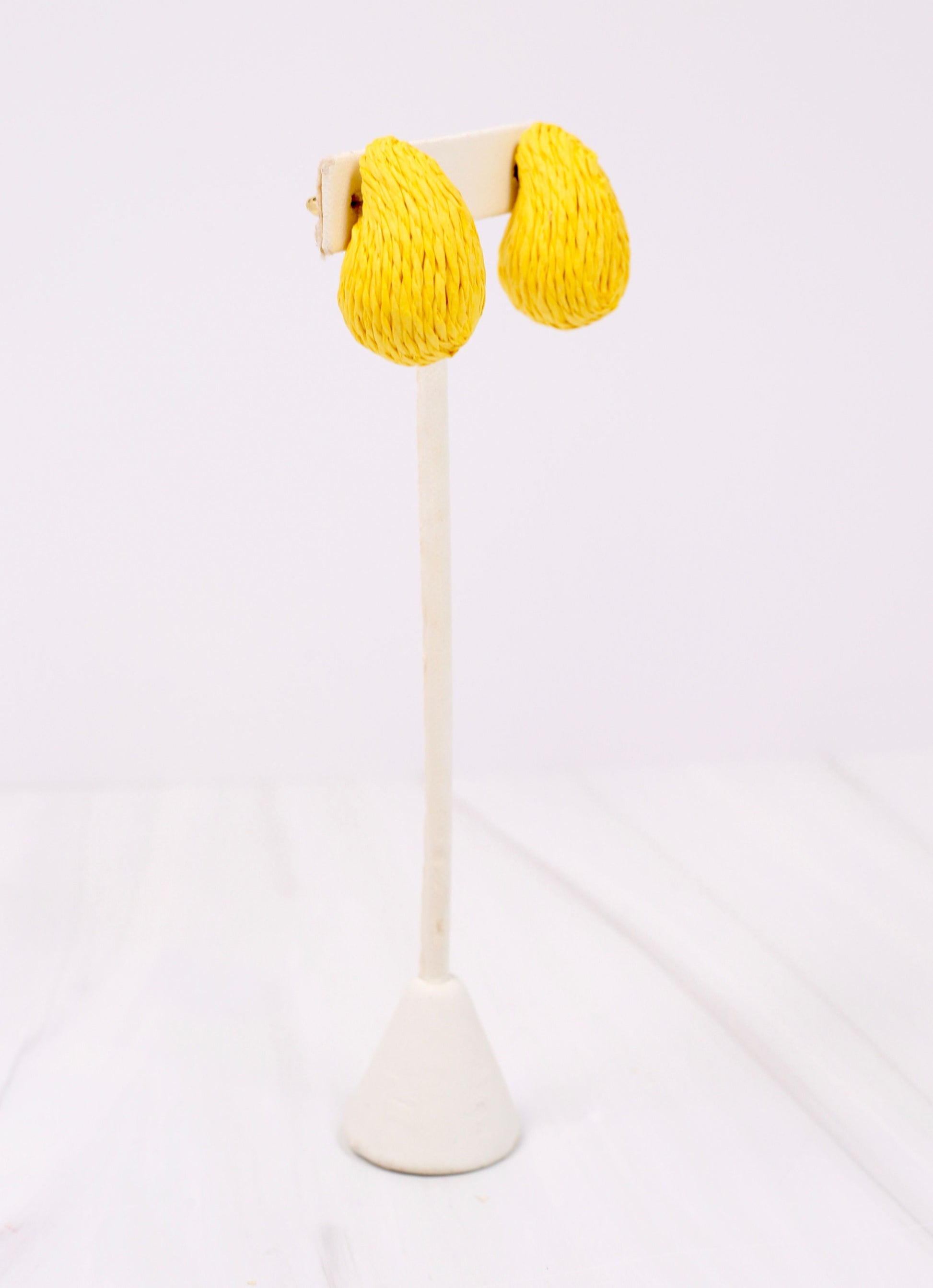 This fun drop earring is raffia wrapped and on a post back. Such a great piece to bring some color to your outfit!