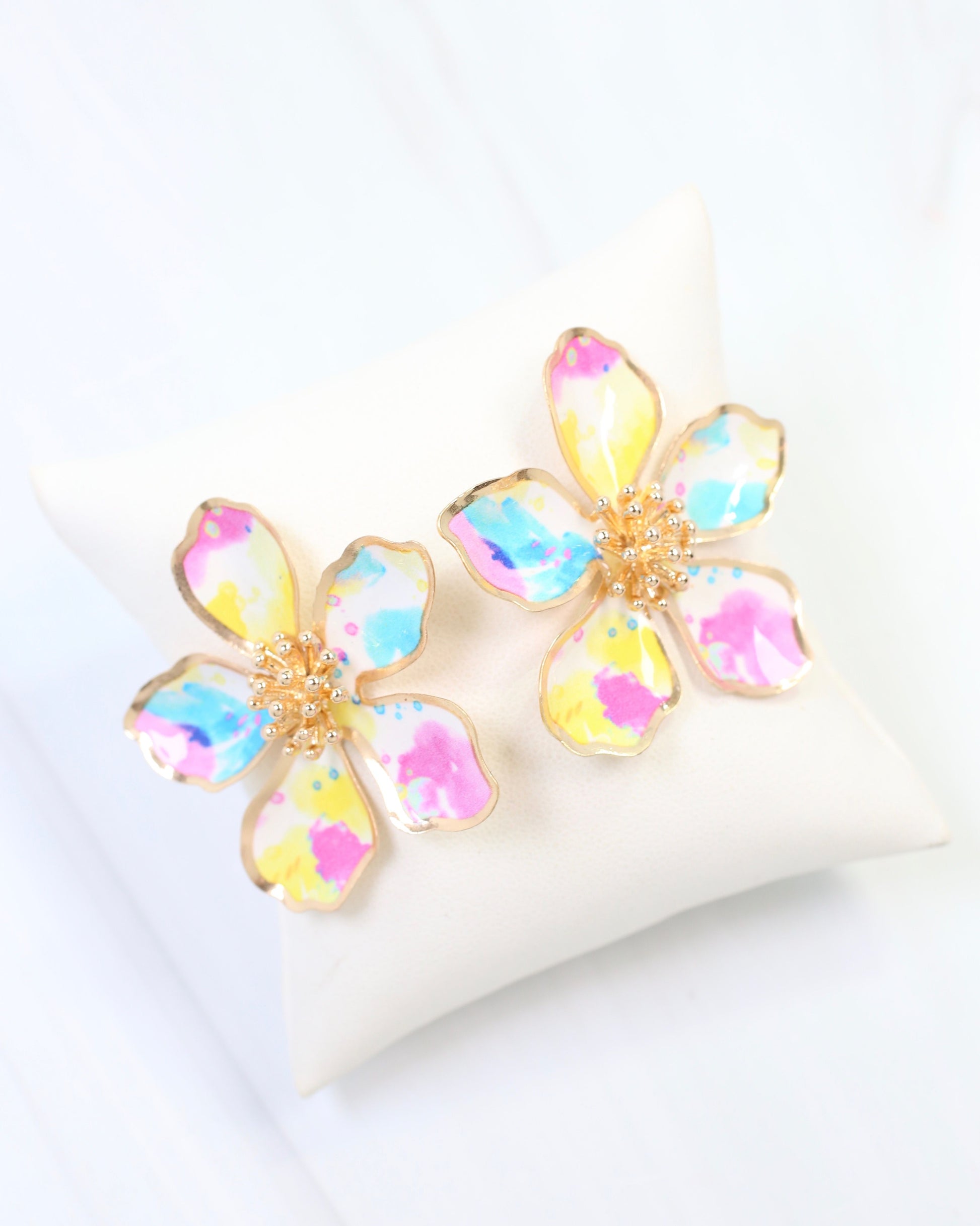 Vibrant multicolor flower studs that blend botanical charm with contemporary style. These post earrings deliver effortless elegance for any occasion, from everyday wear to special events.
