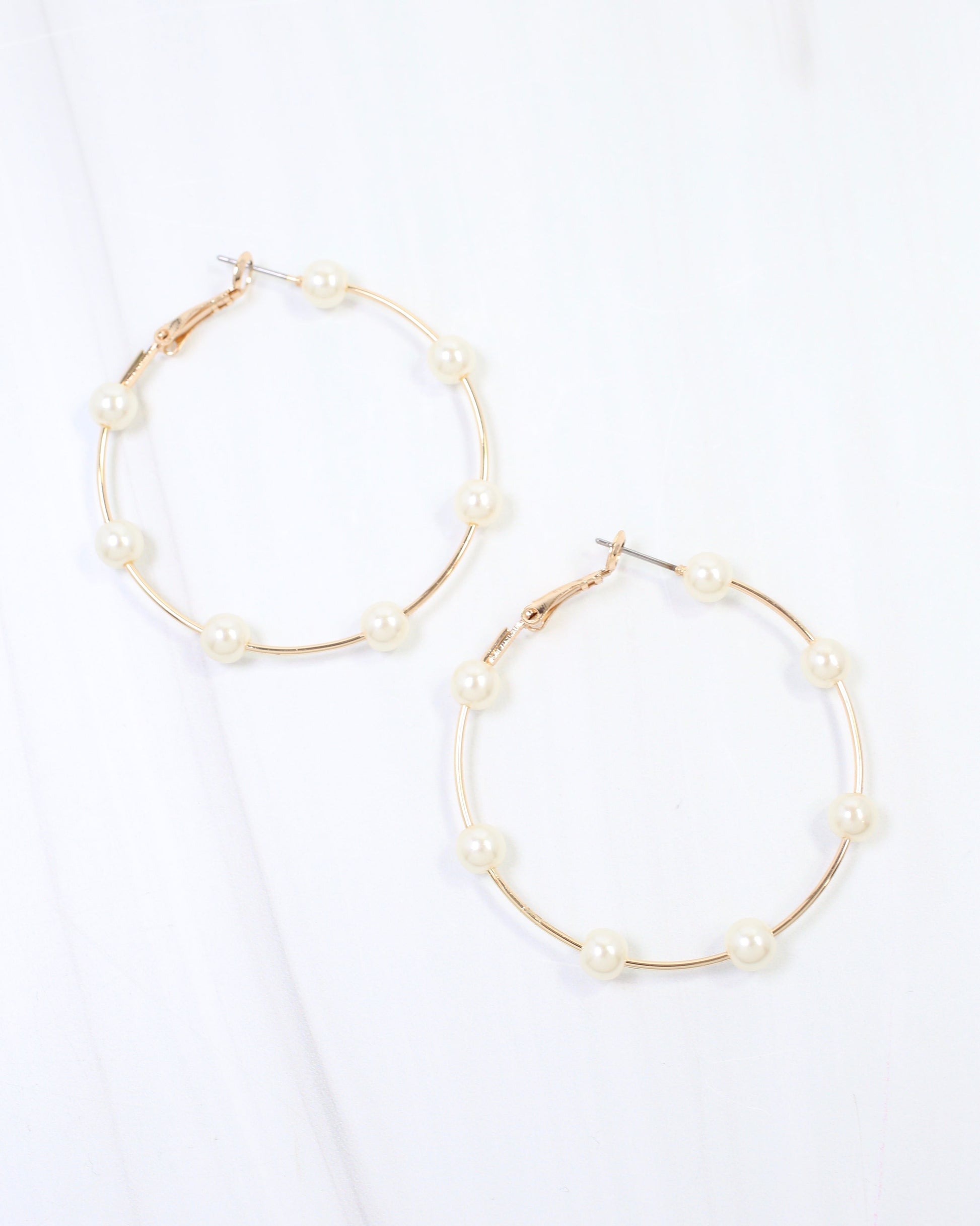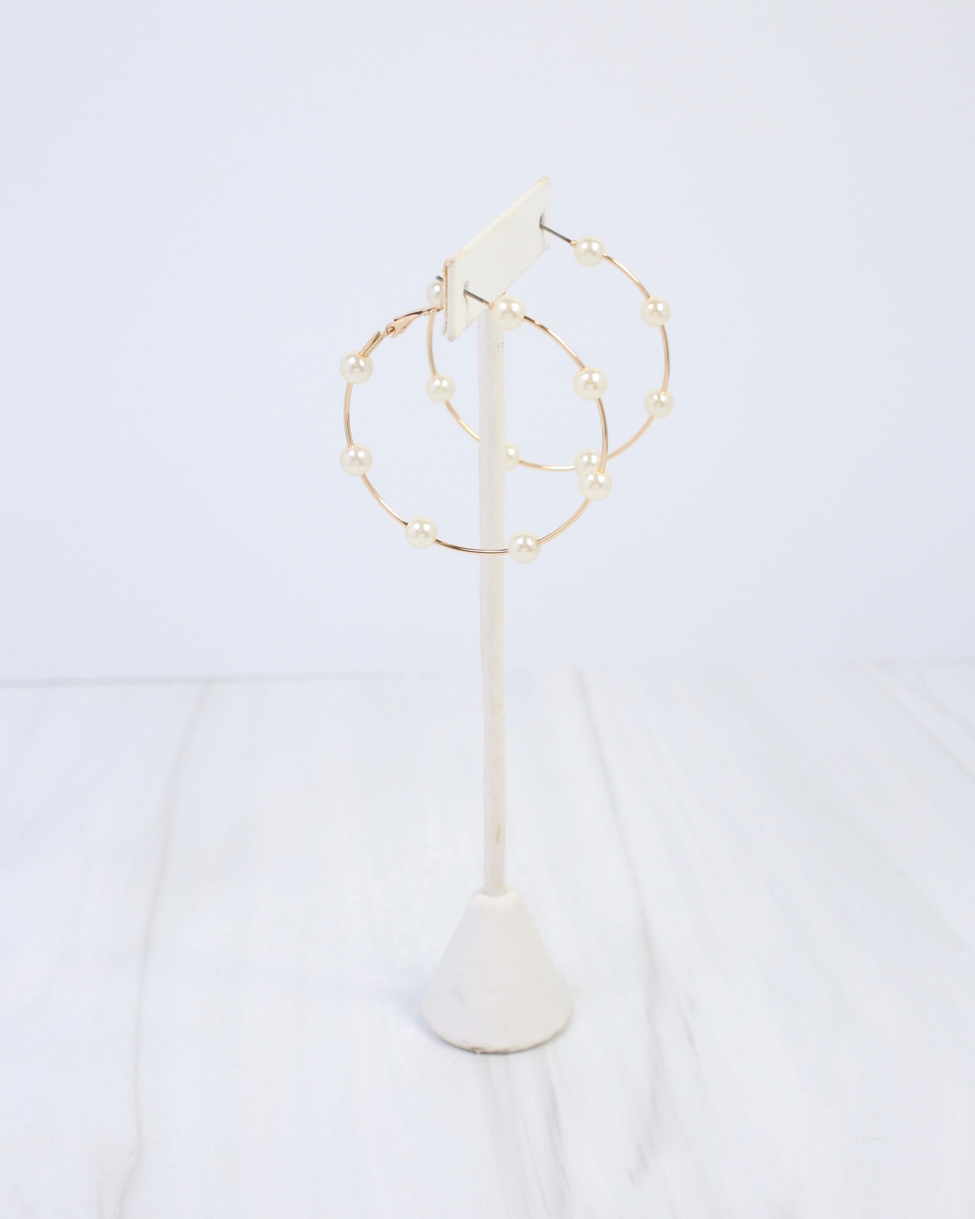 Elevate your look with the Mount Clemens Pearl Hoop Earrings in gold. Multiple delicate pearls cascade along each hoop, creating a refined sparkle that catches light beautifully. Perfect for adding dimension and sophistication to any ensemble.