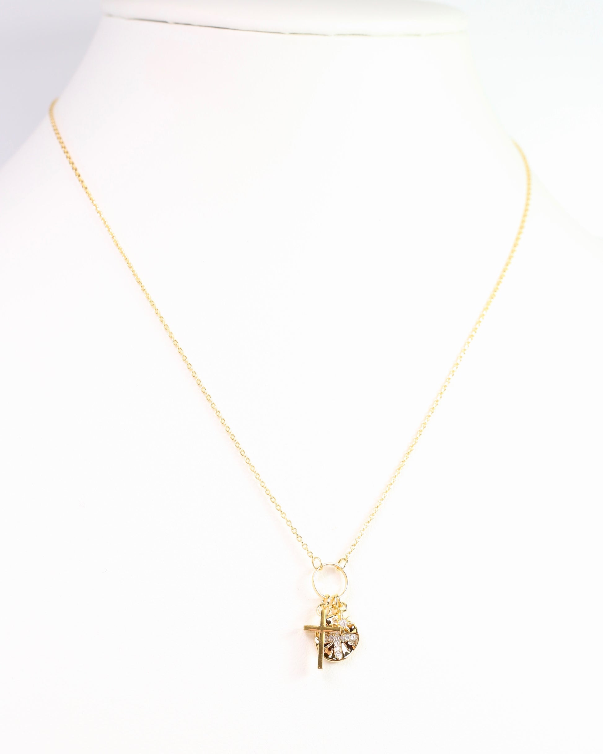 Natalie Cross Charm Necklace Gold