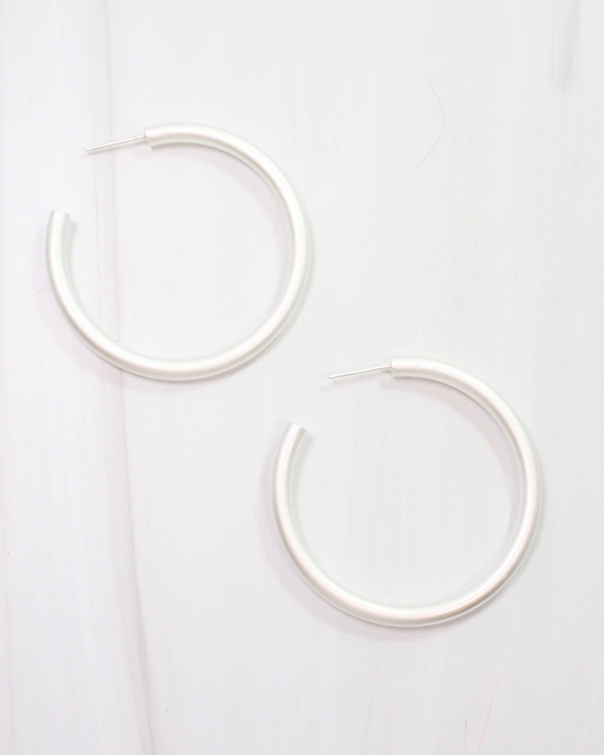 Elevate your next look in this beautiful hoop earring. It has a matte finish on a post back and is a great size to complement any outfit.