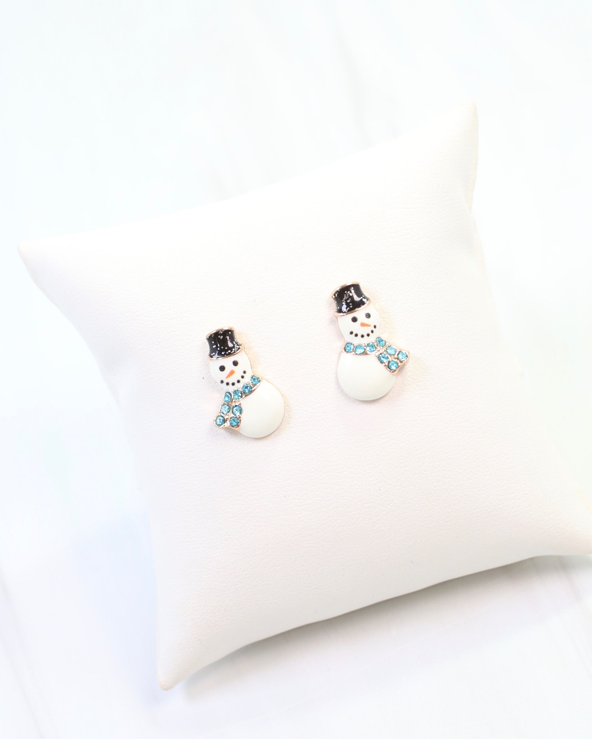Add a playful, festive touch to any outfit with the North Pole Snowman Stud in White. This chic enamel stud features a turquoise crystal scarf and a sleek black enamel top hat, blending classic holiday charm with a modern twist. Perfect for accessorizing stylishly during the winter season.