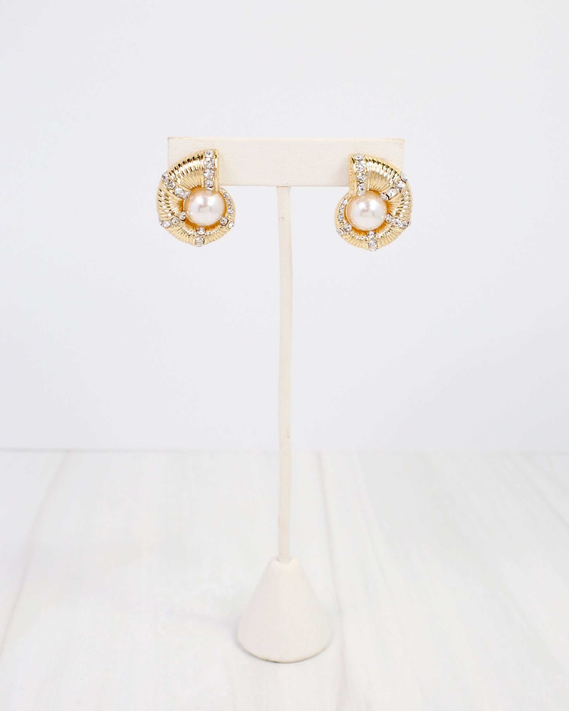 Ocean Treasure Pearl and CZ Earring Gold