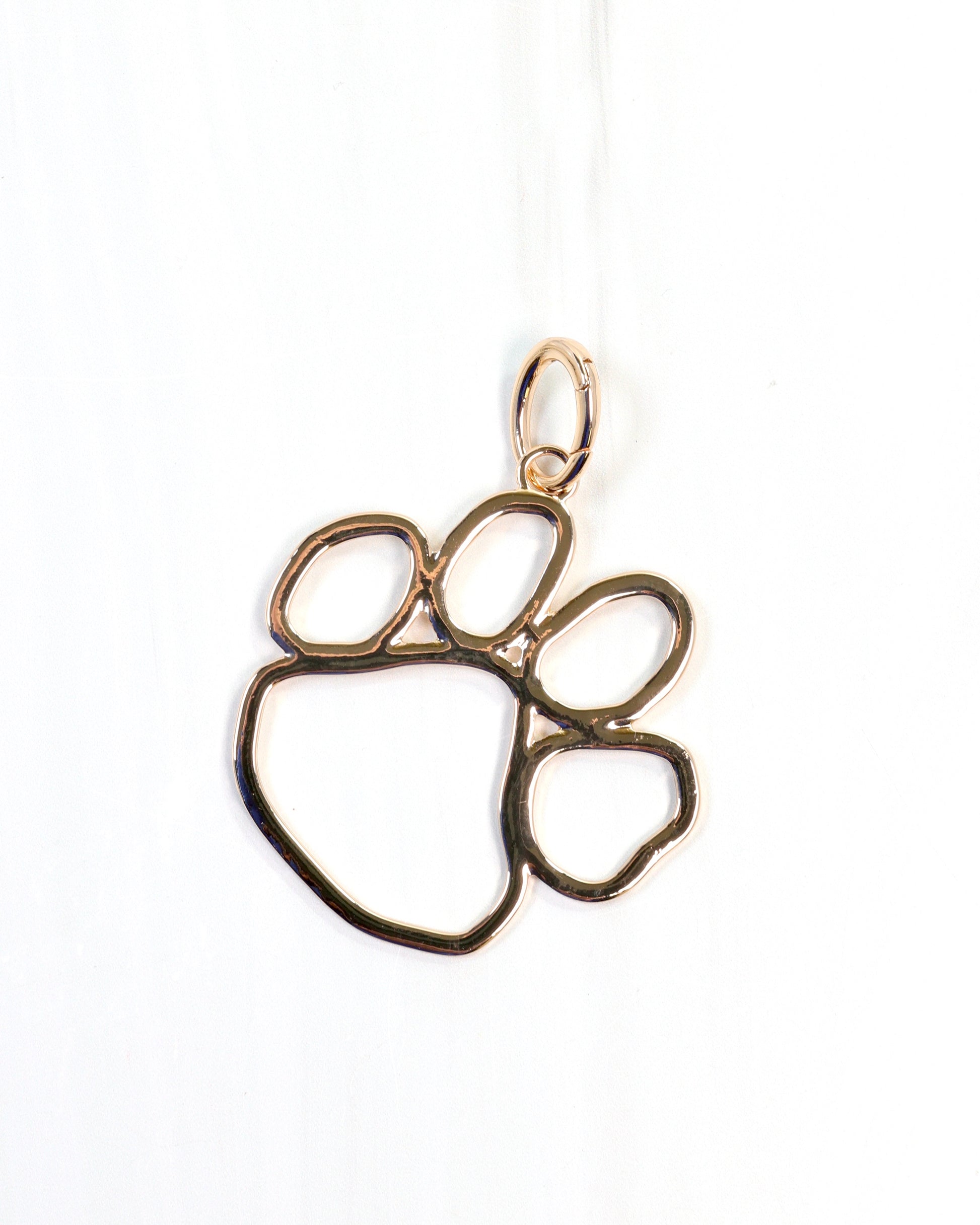 Add a touch of charm to your look with the Parker Open Paw Charm in gold. Designed to clip effortlessly onto our stone necklaces or any accessory, it’s the perfect way to show your style and spirit. Ideal for game day or everyday wear, this fashionable charm adds a playful yet elegant detail to your ensemble.