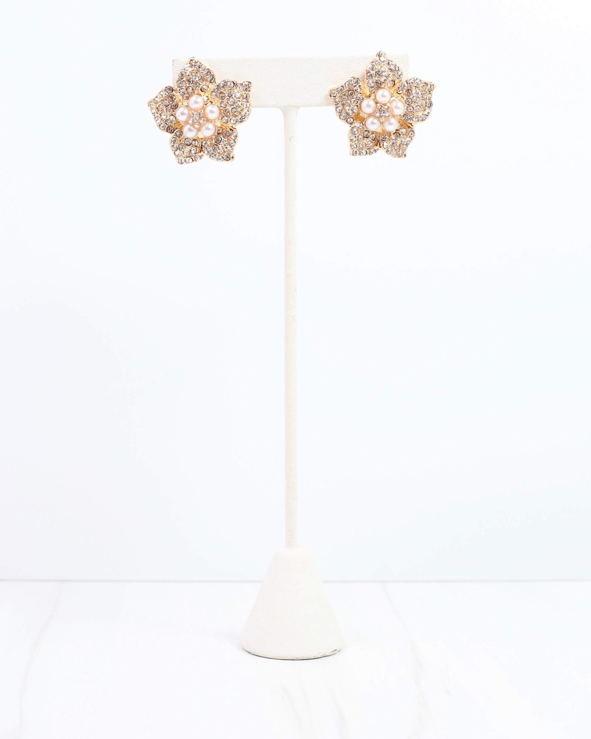 Add a touch of charm with these playful Pave Flower Post earrings in gold. Sparkling CZ stones form delicate petals around a lustrous pearl center, creating a fun and elegant look that brightens any outfit. Perfect for adding a little sparkle and whimsy to your day!