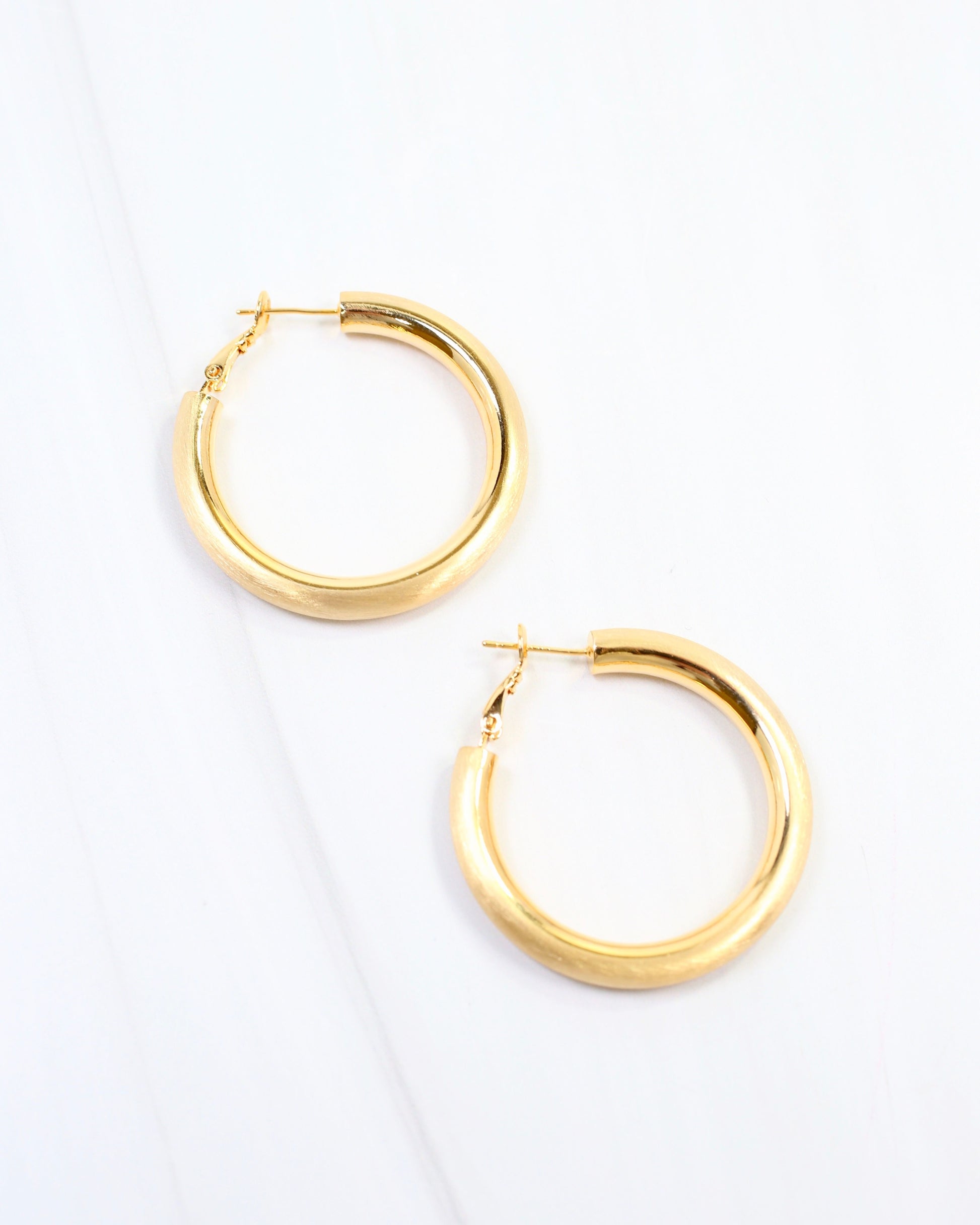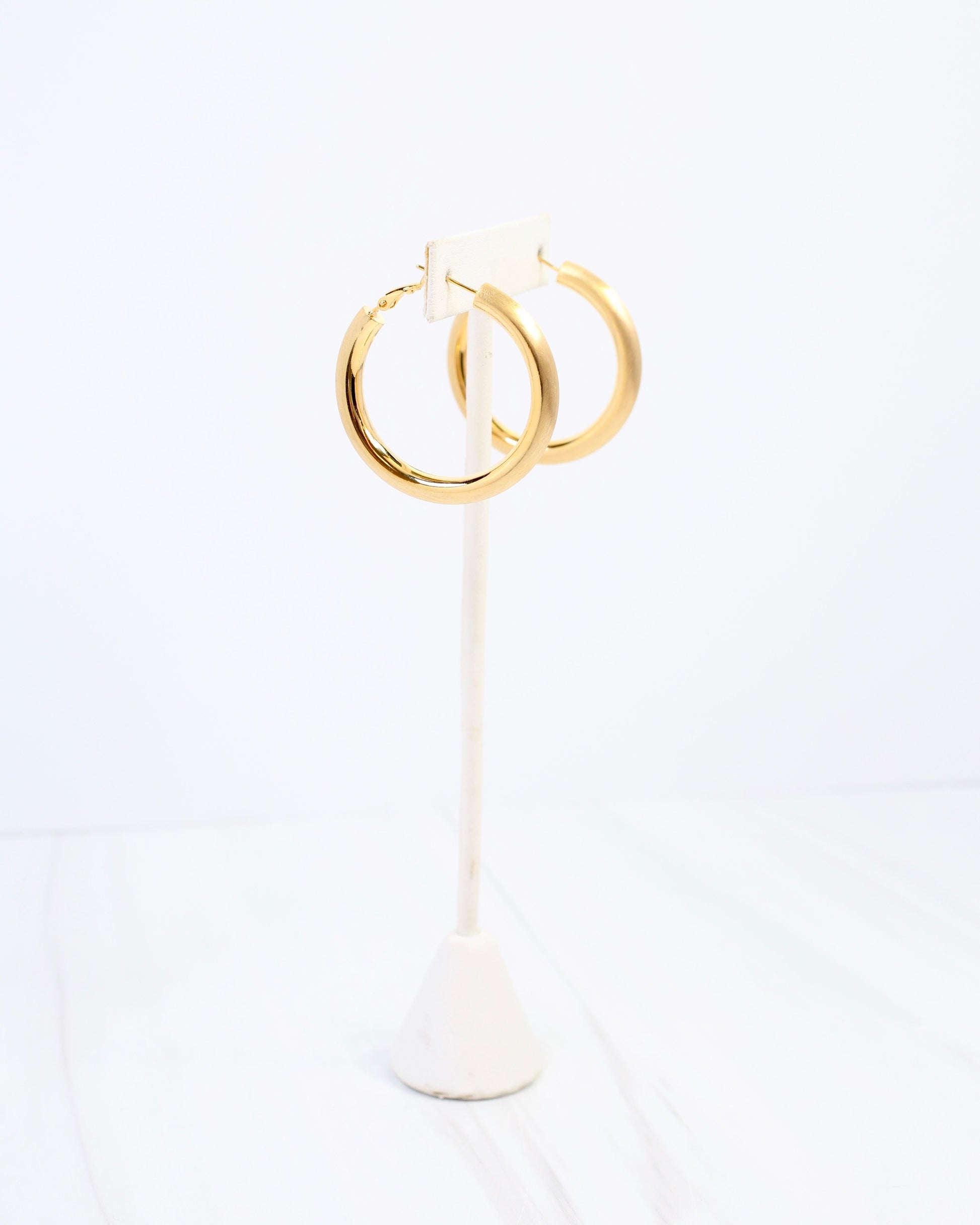 Make a bold impression with the Plainfield Tubular Hoop Earring in warm gold. These architectural beauties feature a sleek tubular design that commands attention while maintaining an effortlessly chic aesthetic. The substantial yet lightweight construction offers comfort for extended wear, making them ideal for both everyday styling and special occasions. A modern classic that adds dimension and confidence to any look.
