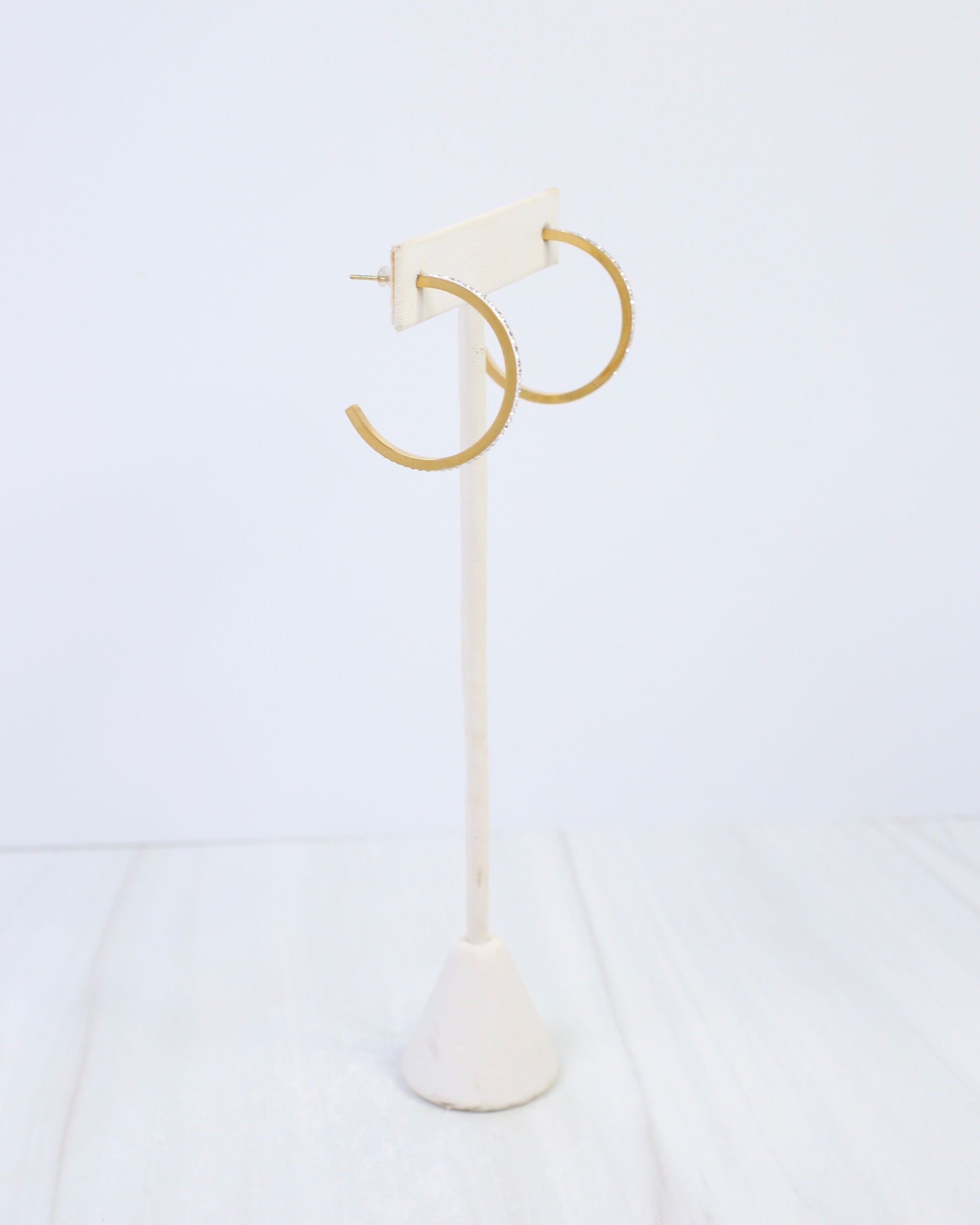 Radiate luxury with the Revere Pave Lined Hoop Earring in gold. These sophisticated stunners feature a stunning pavé design that lines the inner curve, creating a dazzling sparkle from every angle. The perfect balance of understated elegance and eye-catching glamour, they transition effortlessly from boardroom to night out. Timeless, versatile, and absolutely irresistible—a true investment piece for your jewelry collection.