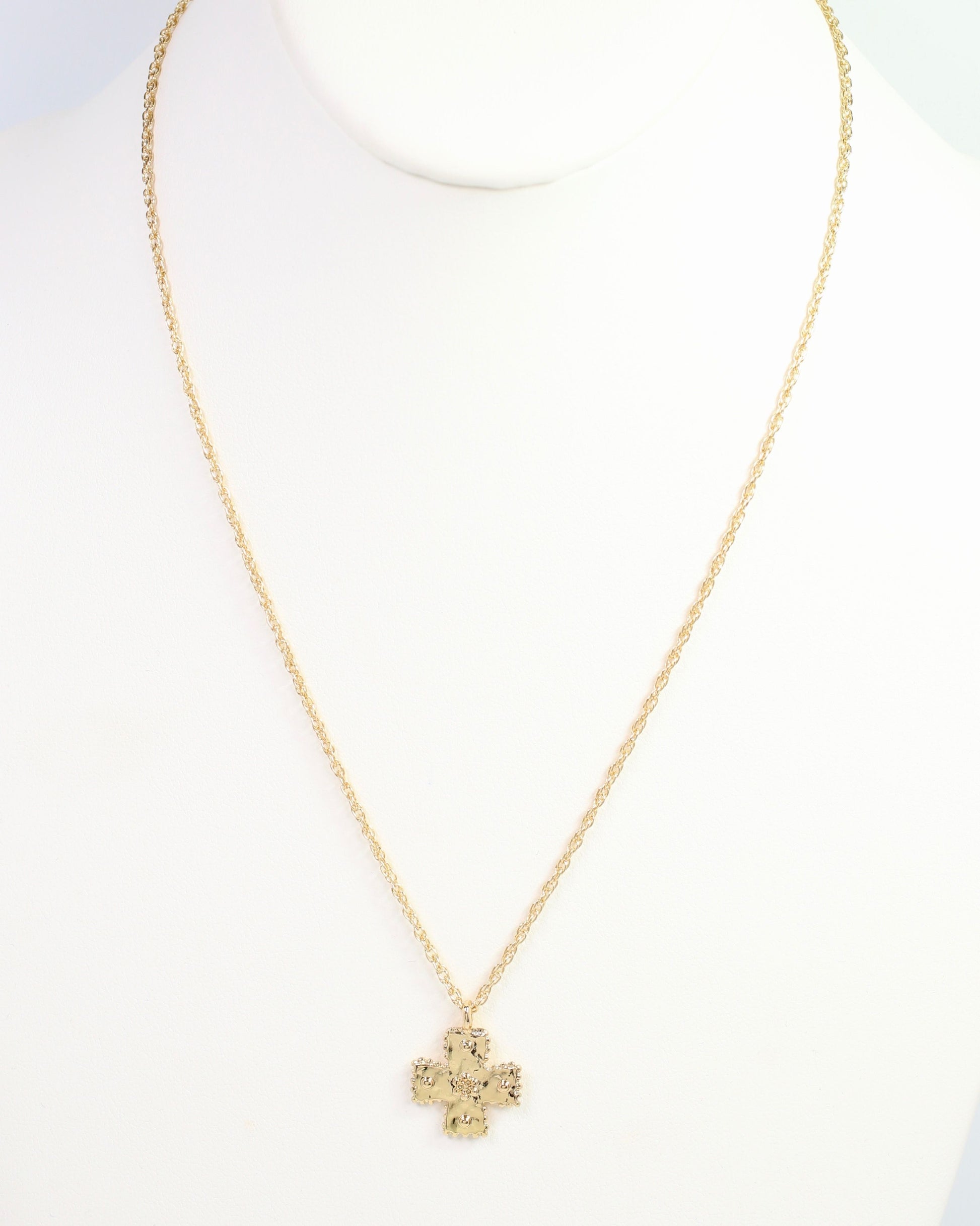 The Rexburg Cross Necklace in Gold offers a delicate and refined design perfect for everyday wear. Its dainty cross pendant adds a subtle touch of elegance, making it an ideal accessory to complement any fashion-forward look.