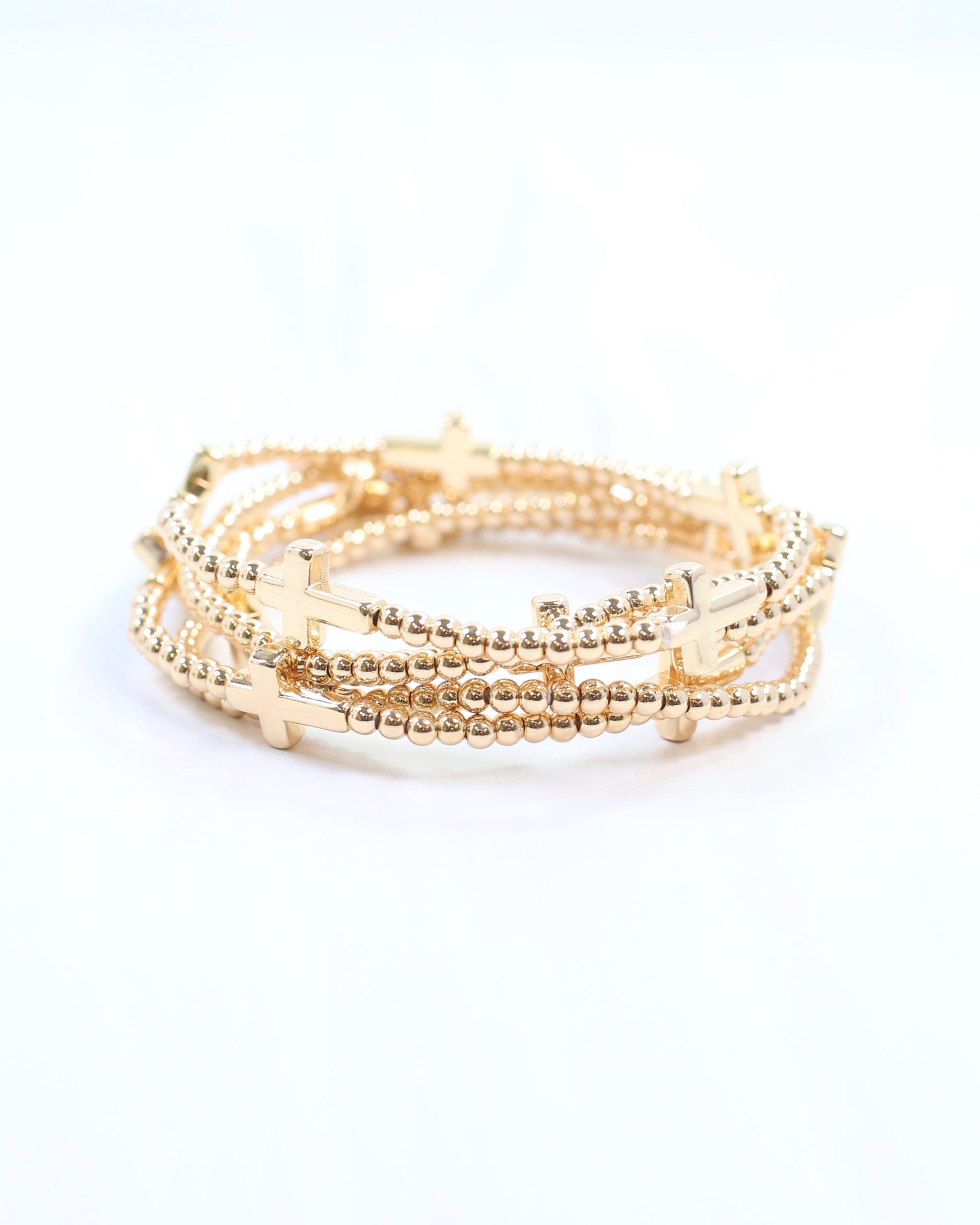 Sally Cross and Bead Stretch Bracelet Set Gold