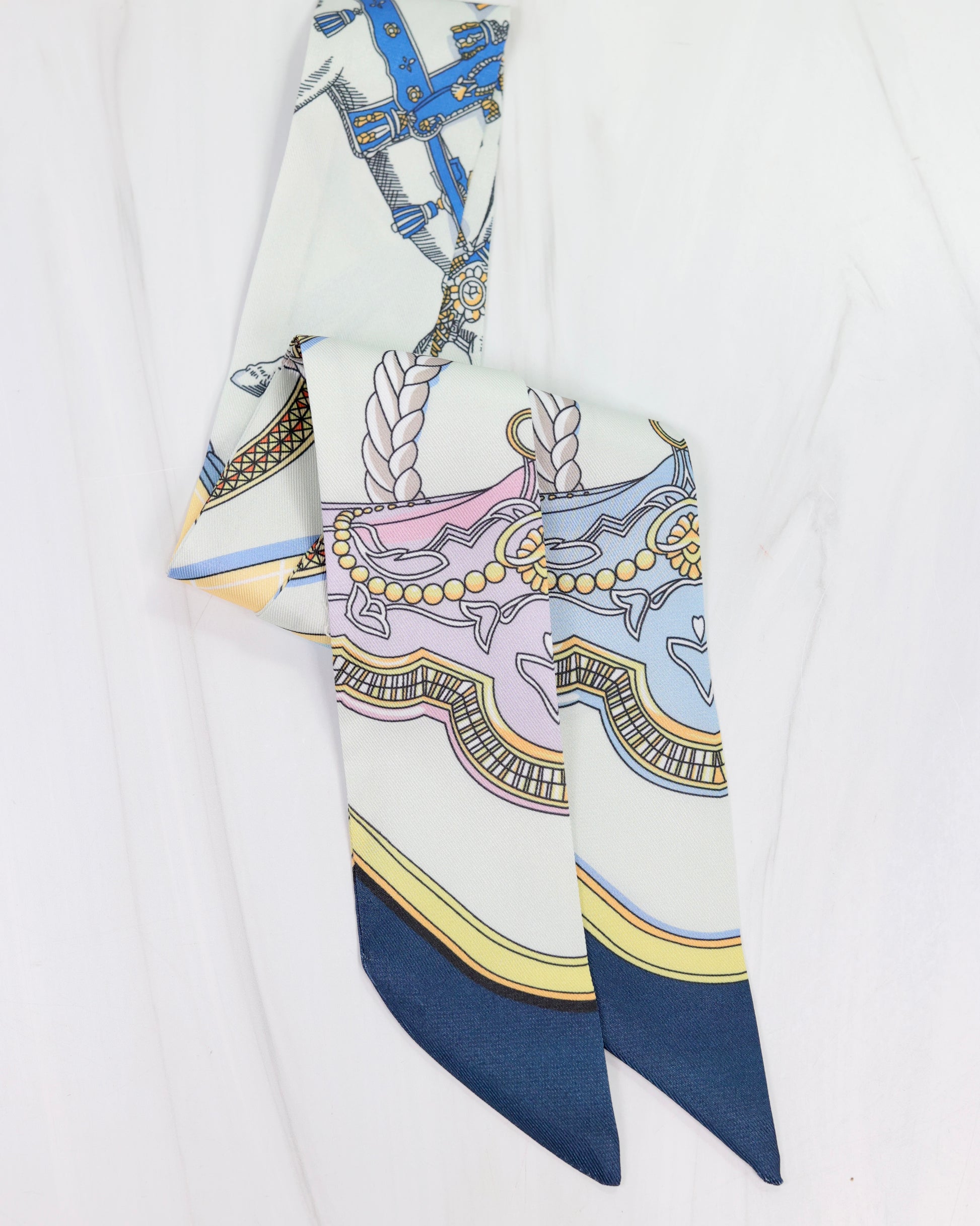 Add a pop of playful charm with the Santee Braided Rope Print Scarf. Its beautiful colors make it perfect to tie on your purse, wear in your hair, or even transform into a cute necklace with a charm. Versatile and fun, this scarf is a must-have accessory to brighten up any look.