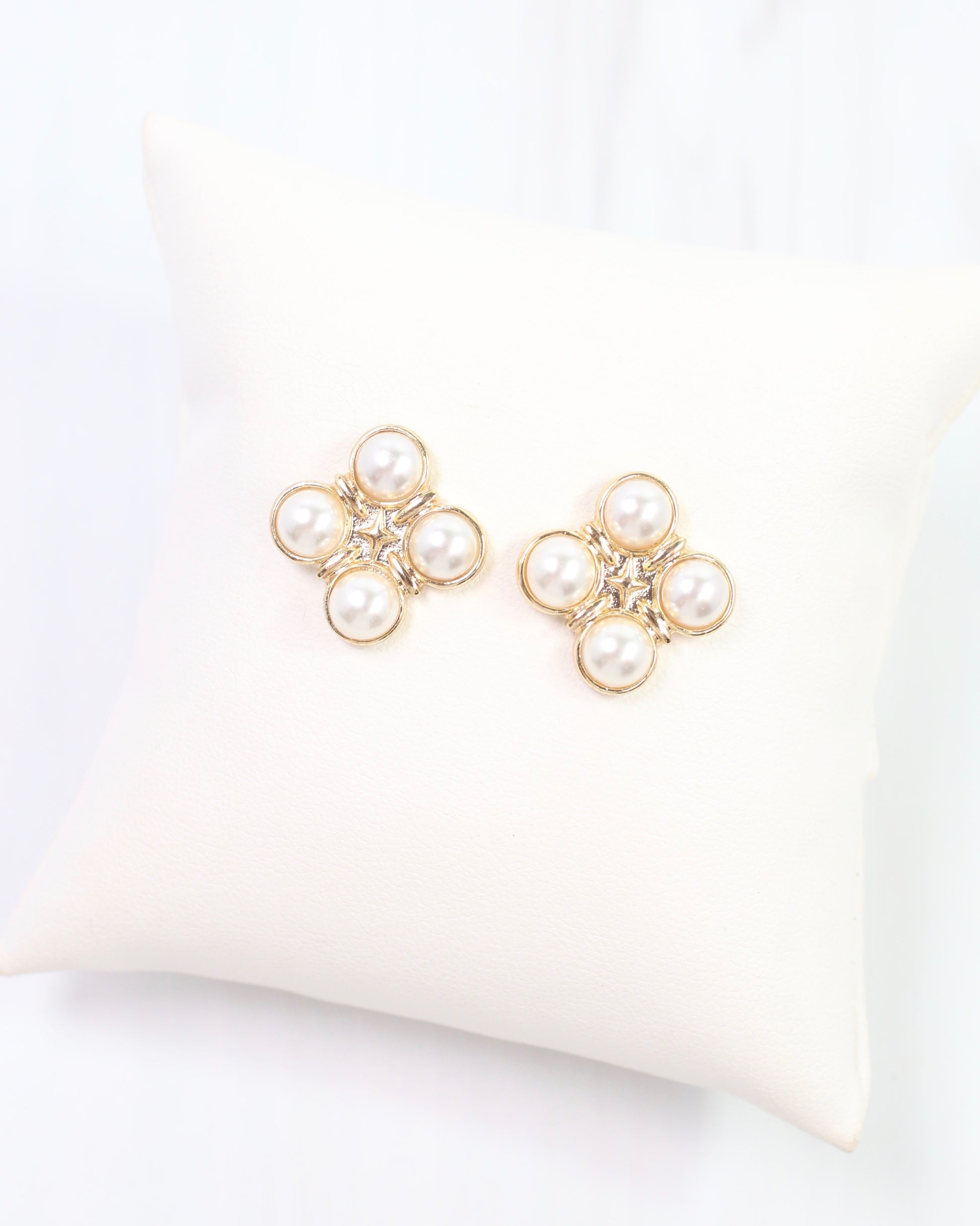Add a touch of charm with the Shearer Pearl Earring in Cream. Four lustrous pearls dance together in a shiny gold setting, forming a playful clover shape. Perfectly sized to brighten your look with a classy, medium-sized stud that’s both elegant and fun to wear.