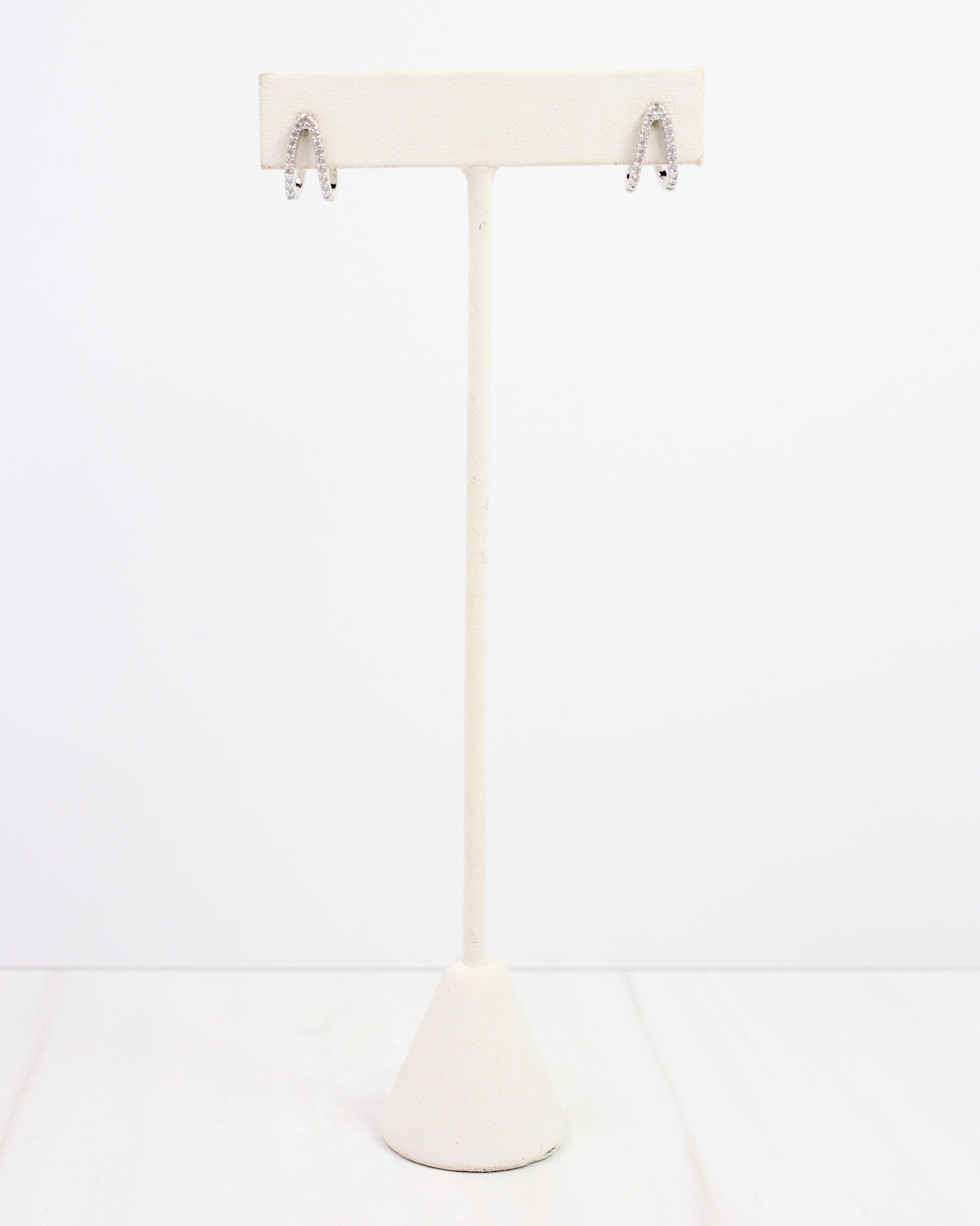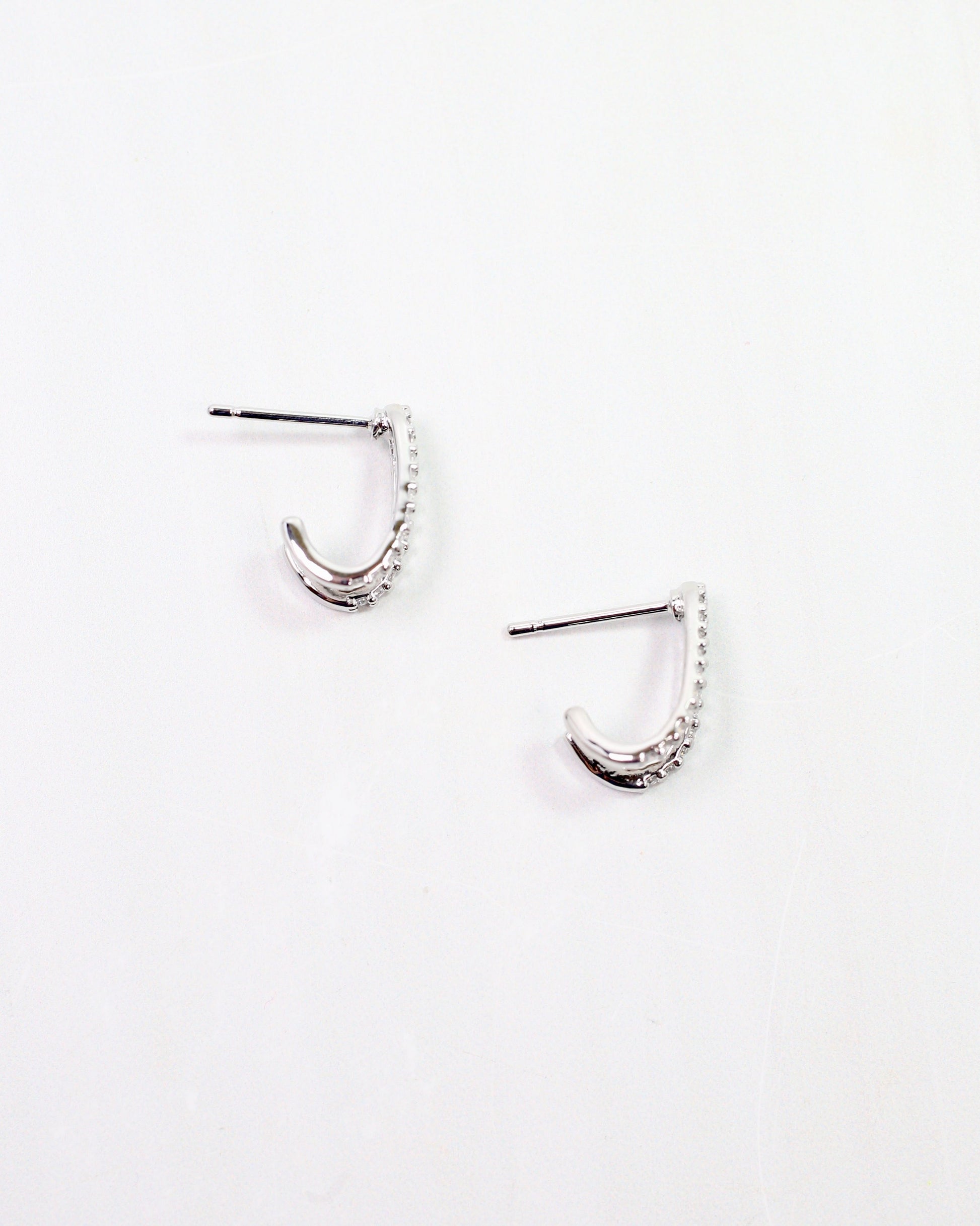 Add a sparkle to your day with the Sissy Huggie Earring in Silver! These pave V-shaped huggies shimmer with dazzling CZ stones set in white gold-dipped metal, making every glance a little more magical.
