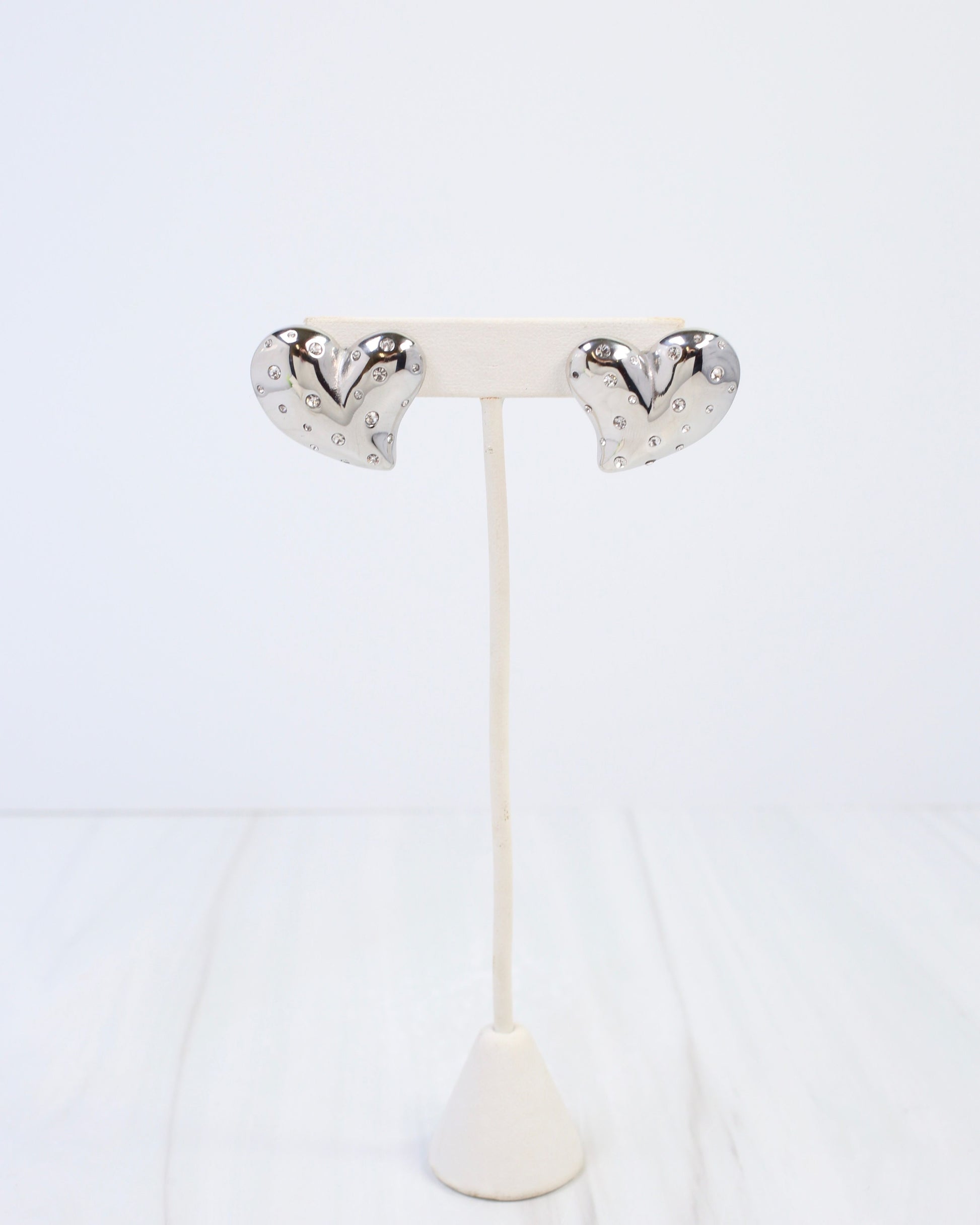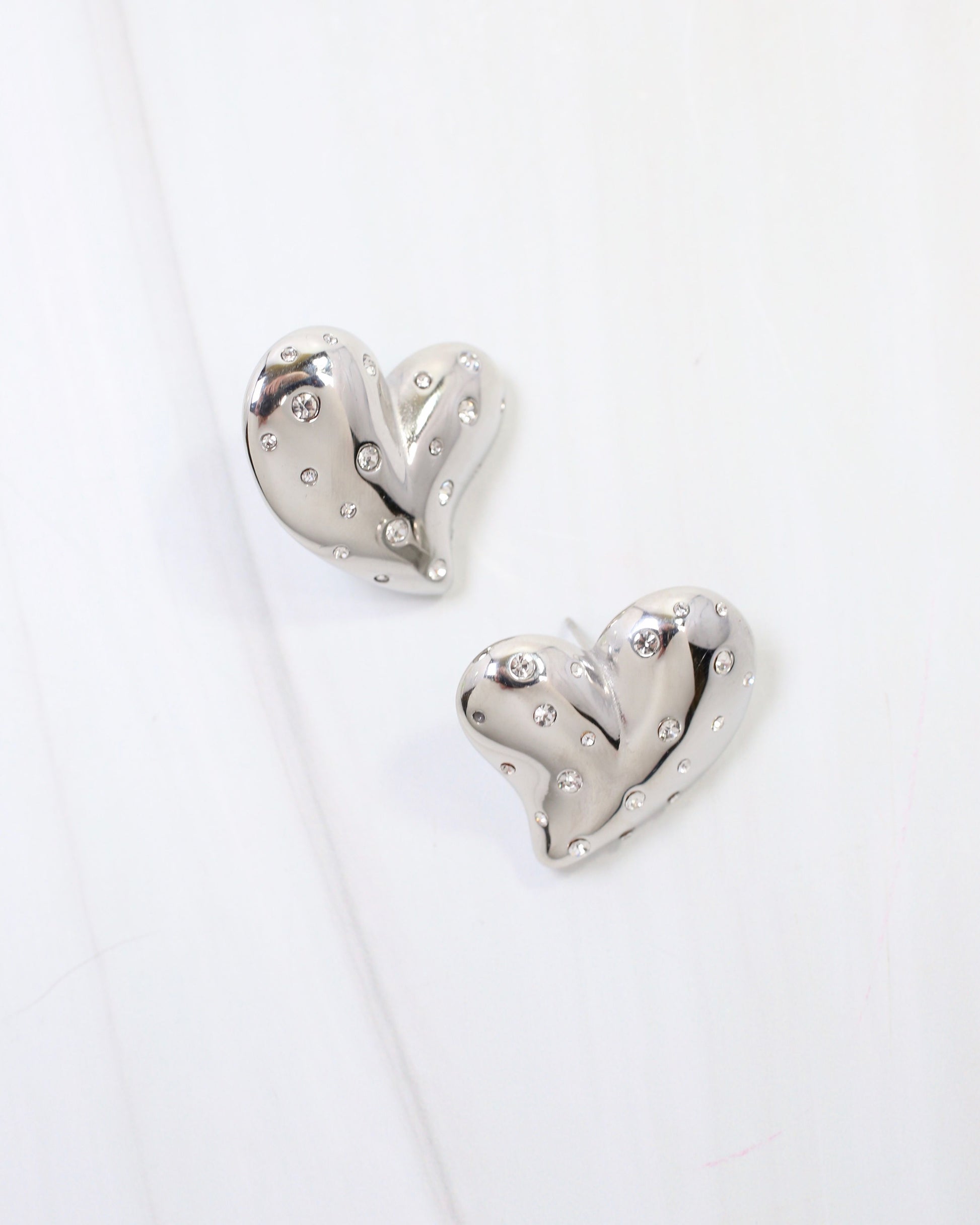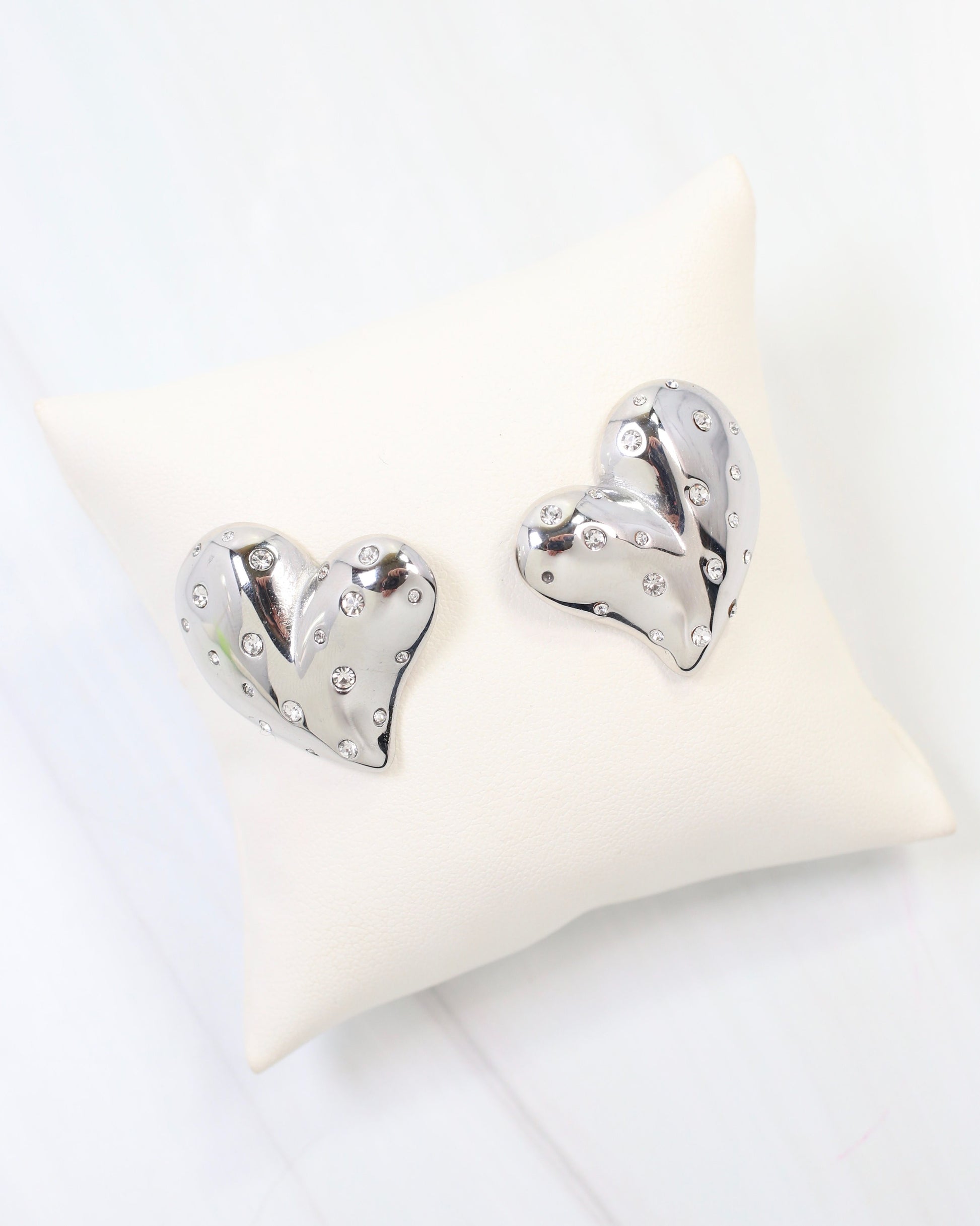 Romance meets radiance in these stunning heart earrings, adorned with sparkling cubic zirconia in a luxurious silver finish. Each piece showcases intricate embellishment that catches light from every angle, creating an enchanting sparkle. Perfect for expressing your romantic side or gifting to someone special, these earrings blend sentimental charm with contemporary glamour for a look that's both meaningful and fashion-forward.