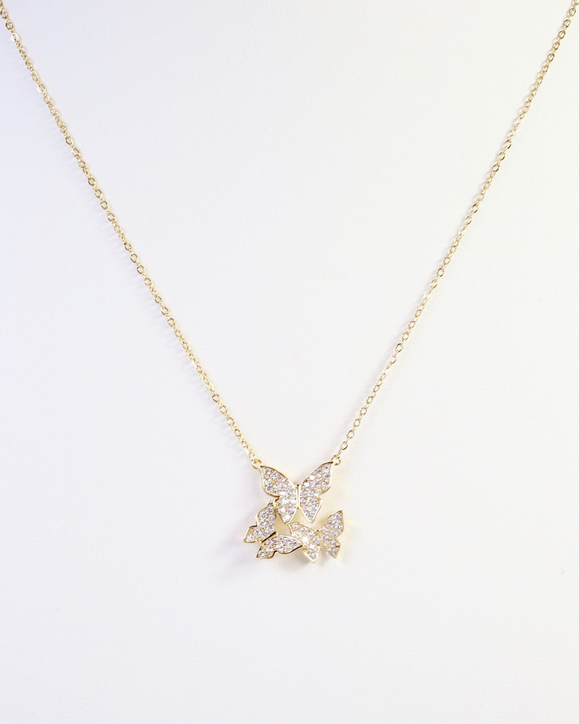 Spread your wings with the Taos Pave Butterfly Necklace in rose gold. This delicate pendant features a butterfly design completely adorned with sparkling cubic zirconia stones that create a dazzling pave effect. The warm rose gold finish adds romantic elegance, making it perfect for those who love nature-inspired jewelry with serious sparkle. A graceful accessory that brings beauty and transformation to any look.