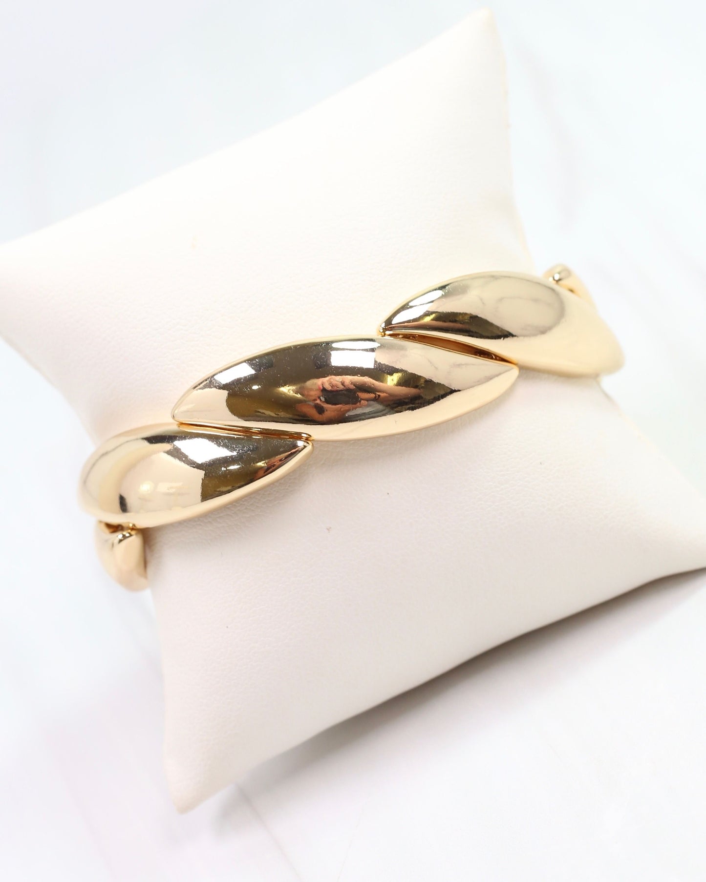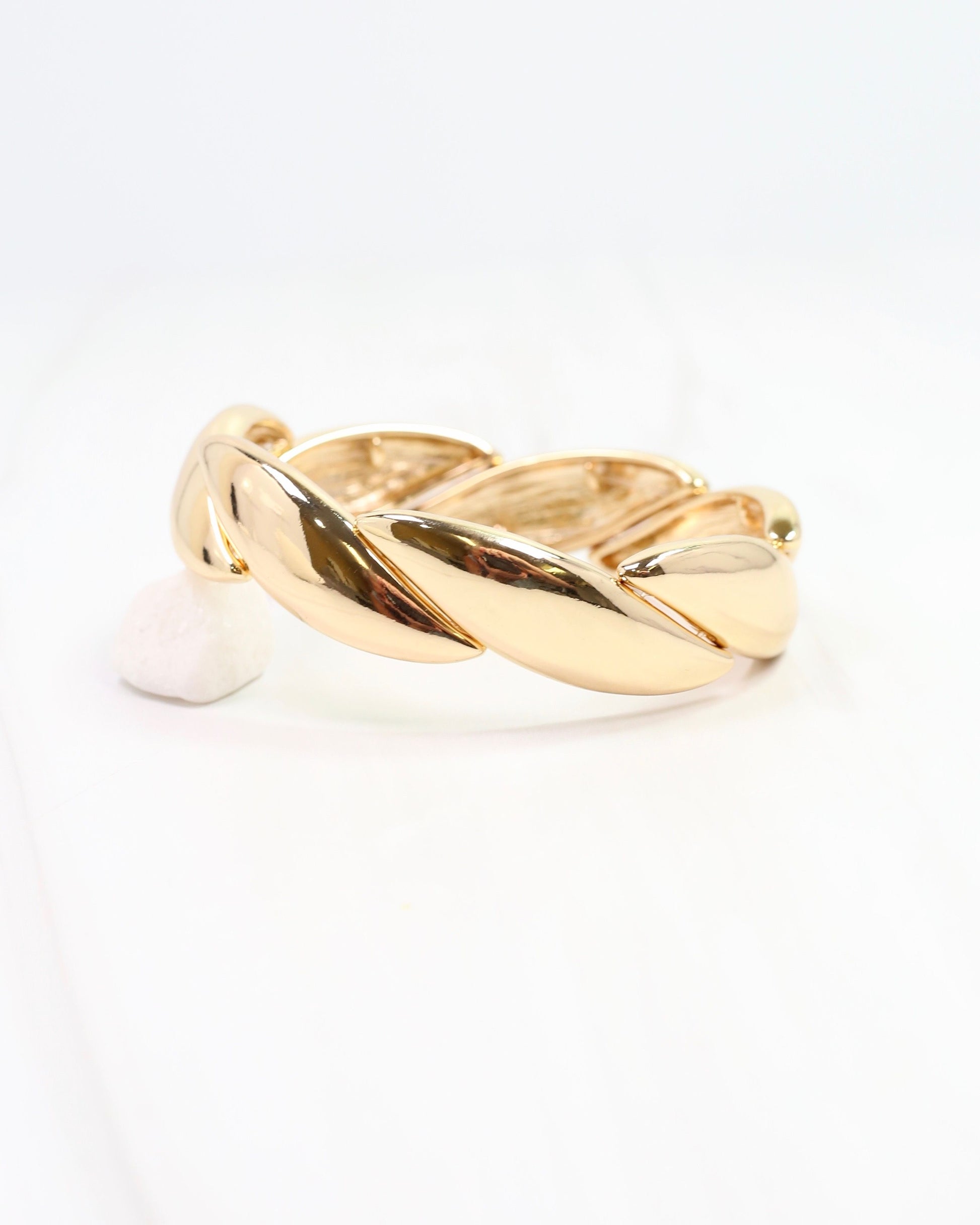 Add a touch of sparkle with the Tilly Stretch Bracelet in Gold. This shiny, twisted design creates a playful illusion that’s perfect for stacking or wearing solo. Its smooth, polished finish makes it an easy favorite to mix and match with your everyday looks.