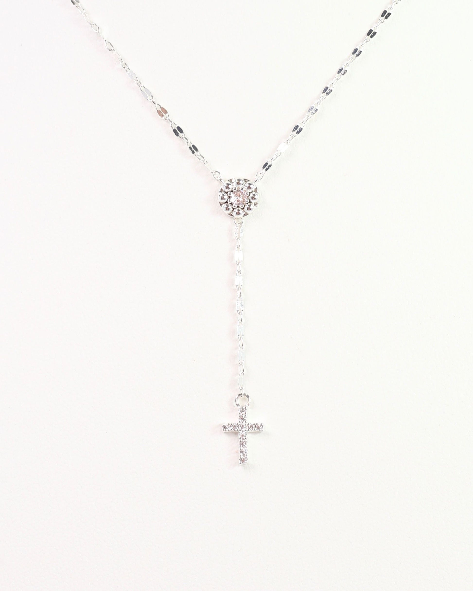 Brighten your style with the Violet Cross Y Necklace in Silver. This playful piece features a sleek flat chain, a sparkling circular CZ detail, and a dazzling pave cross on the Y-shaped drop. It’s the perfect accessory to add a fun, shimmering twist to any outfit.