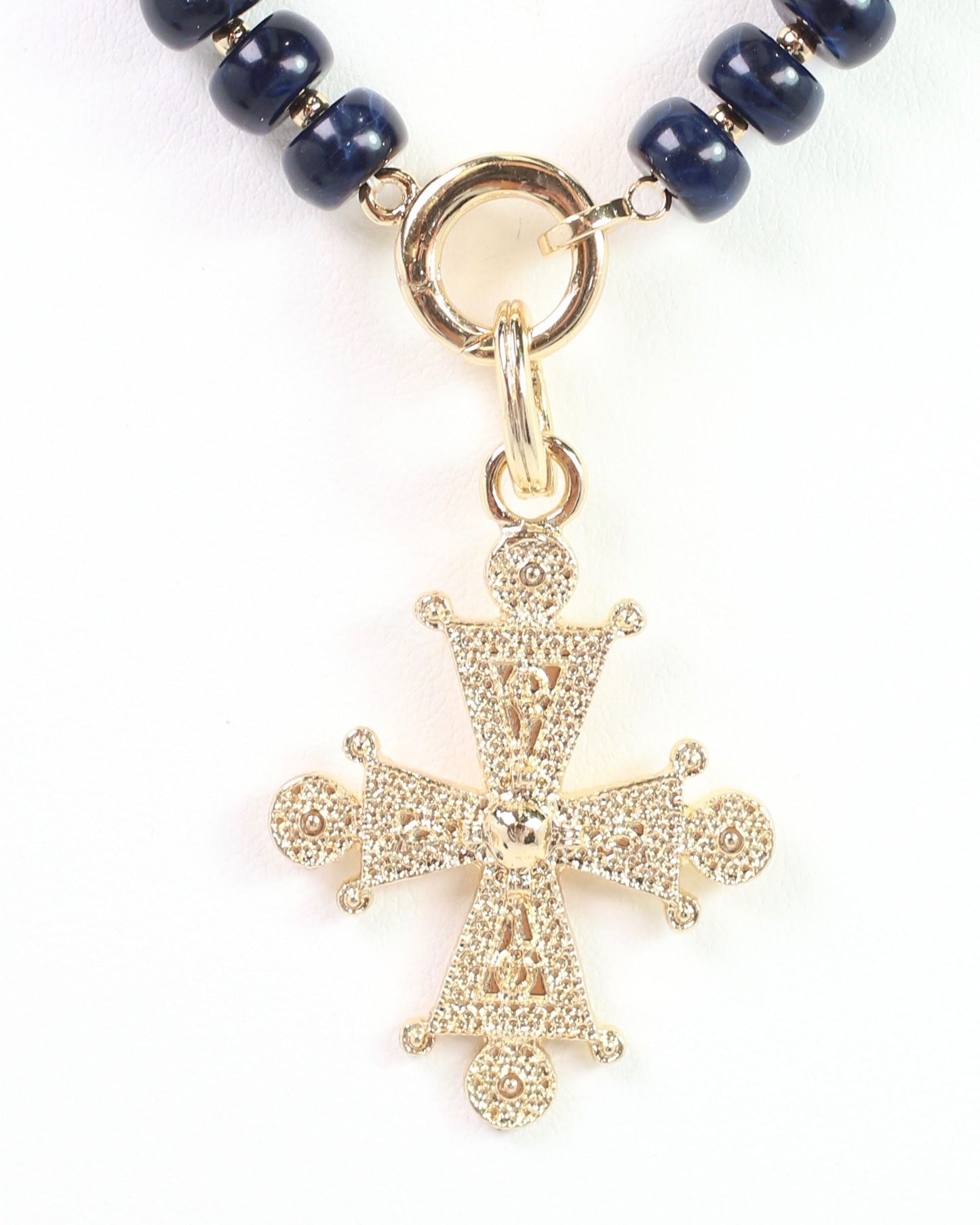 Add a touch of old-world magic to your look with the Wagner Cross Charm in Gold. This playful Celtic-inspired design features charming circular details that bring a unique twist to a classic symbol. Perfect for layering or wearing solo, it’s a delightful way to sparkle with timeless style.
