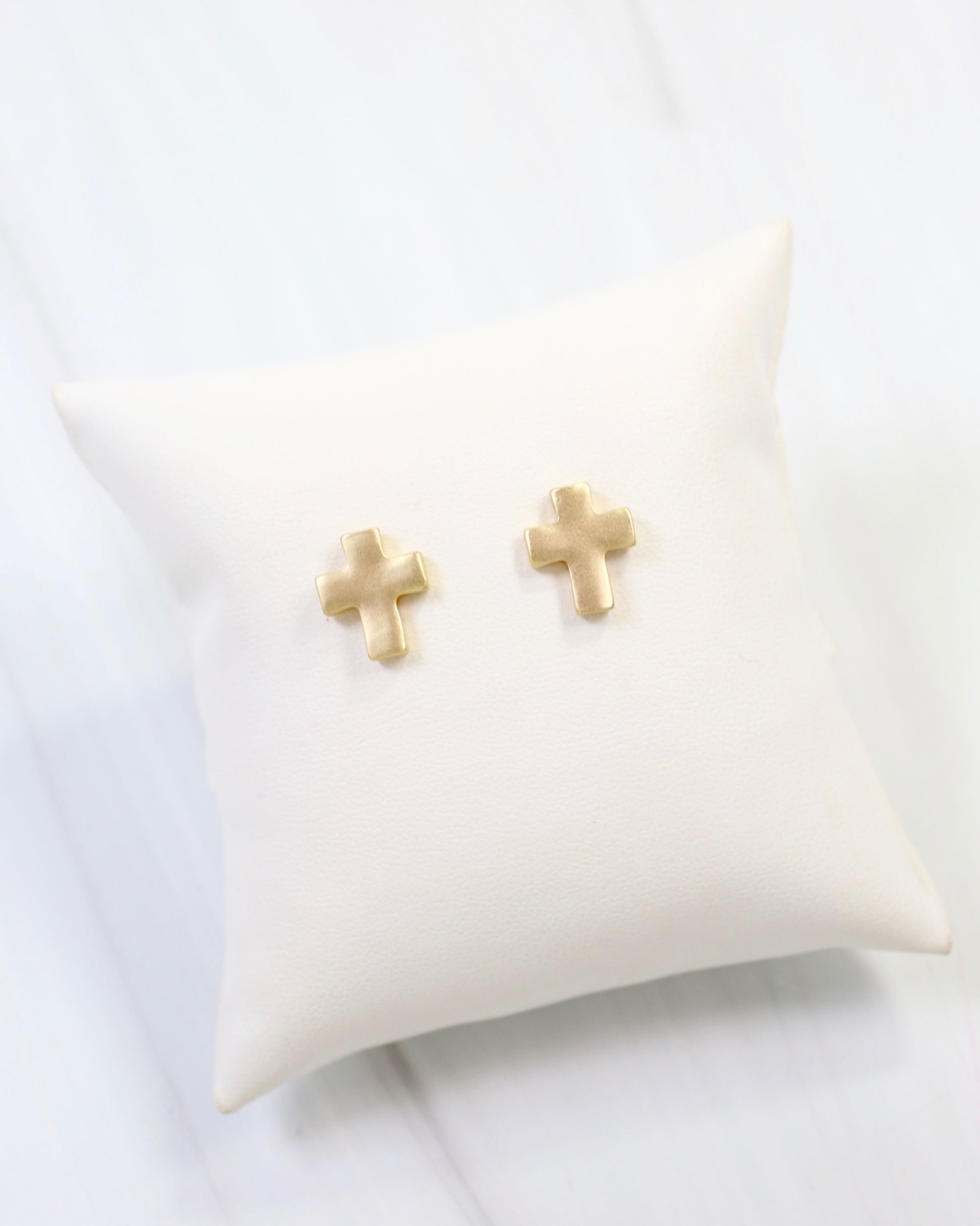 Channel timeless faith and style with the Warren Cross Stud Earrings in worn gold. These classic studs feature a delicate cross design finished in a vintage-inspired worn gold tone that adds character and depth. The understated silhouette works beautifully with any aesthetic, from casual to formal, making them a versatile addition to your jewelry collection. A meaningful piece that combines spiritual significance with everyday wearability and enduring elegance.