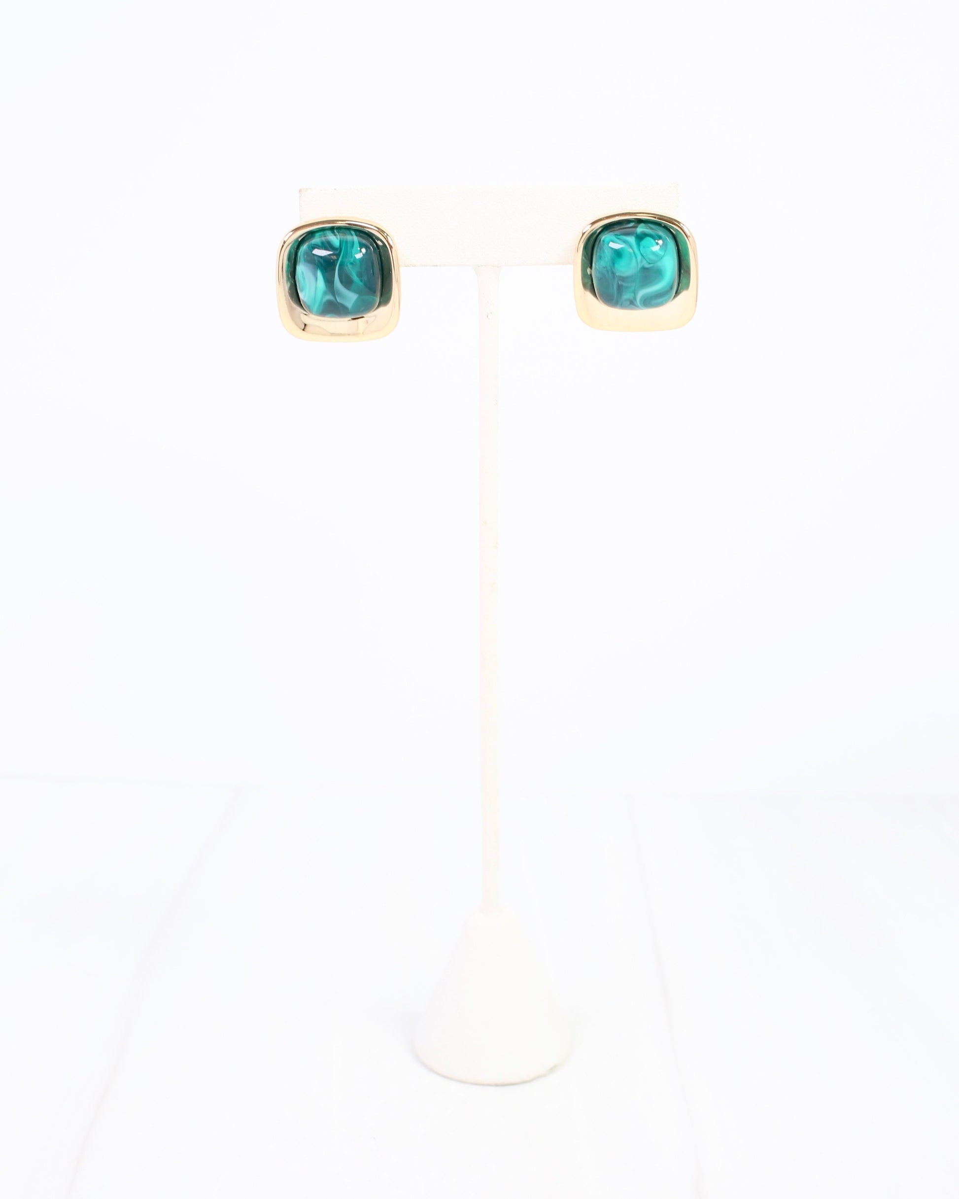 The Waterbury Stud Earring in Green features a rounded, slightly curved gold stud with a smooth marbelized stone at its center. This elegant design makes a subtle yet stylish statement, perfect for adding a fashionable and fun touch to your everyday look.