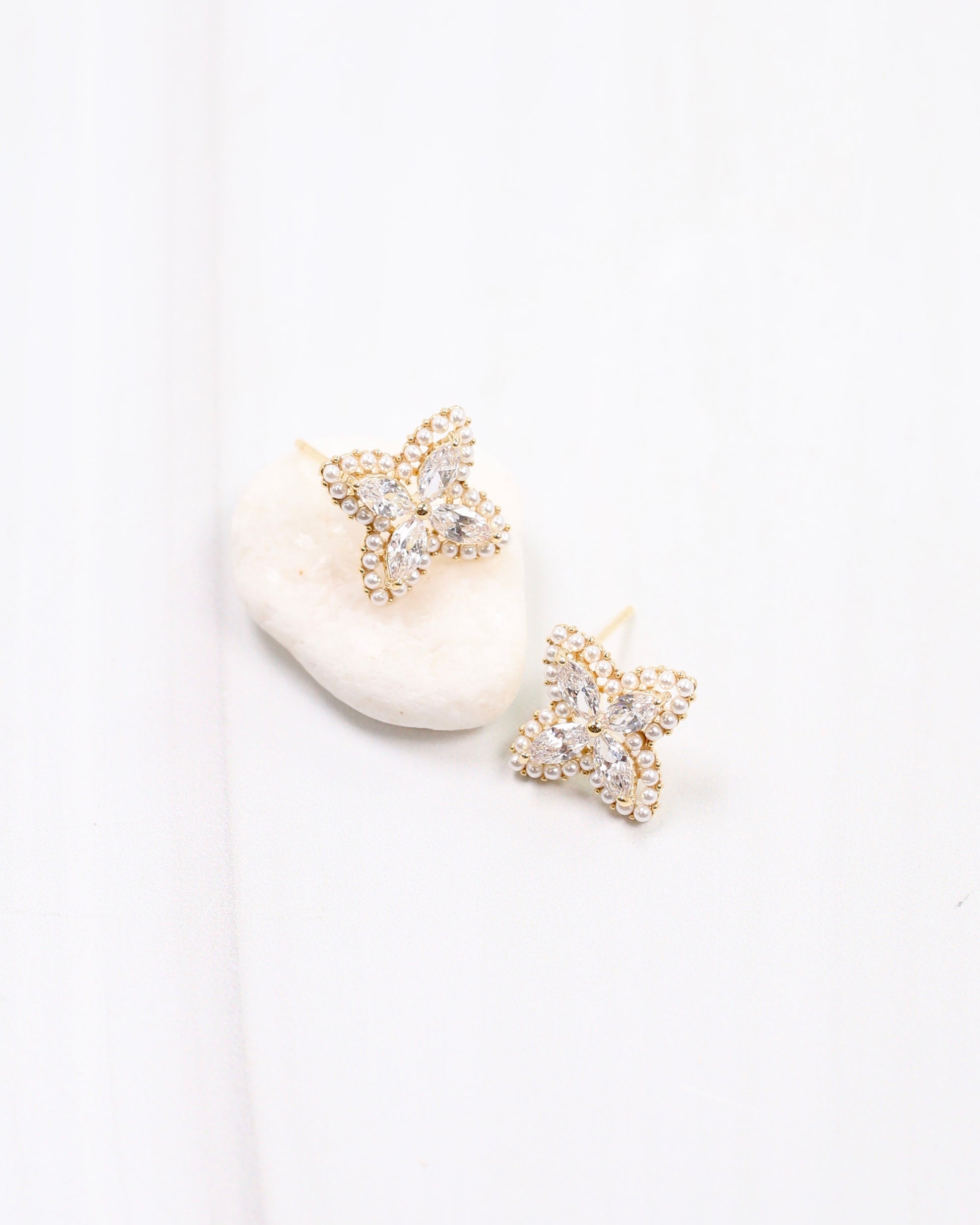 Elevate your style with the Westminster Crystal Stud Gold earrings. These gold-dipped clover studs feature a dazzling CZ pave finish, adding a touch of sparkle and sophistication to any outfit. Perfect for both everyday wear and special occasions.