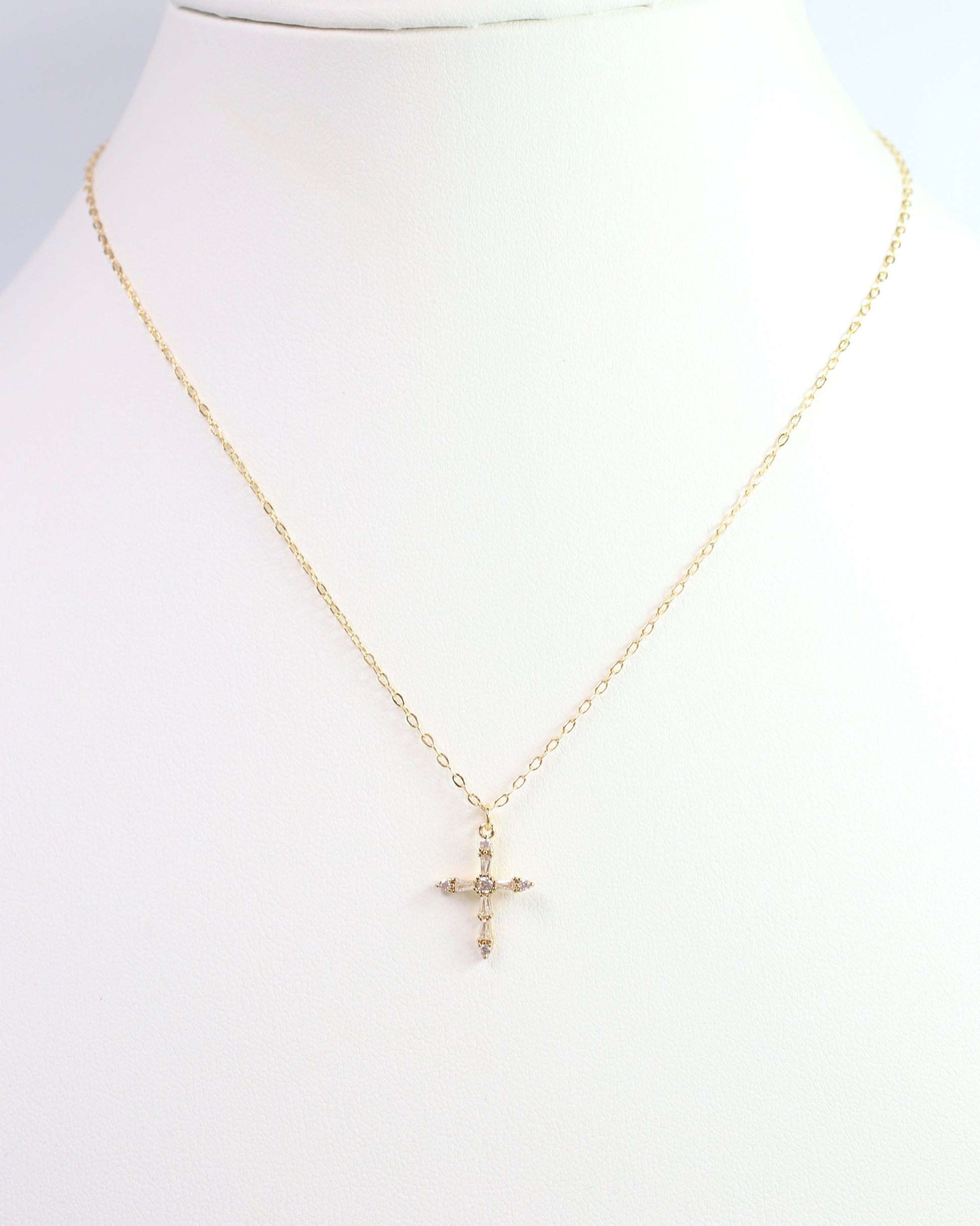 The Wilson Cross Necklace is a distinguished piece featuring a meticulously crafted CZ cross pendant, adorned with precisely cut baguette and round stones. Suspended from a delicate gold-dipped chain, this necklace offers understated elegance with timeless significance.