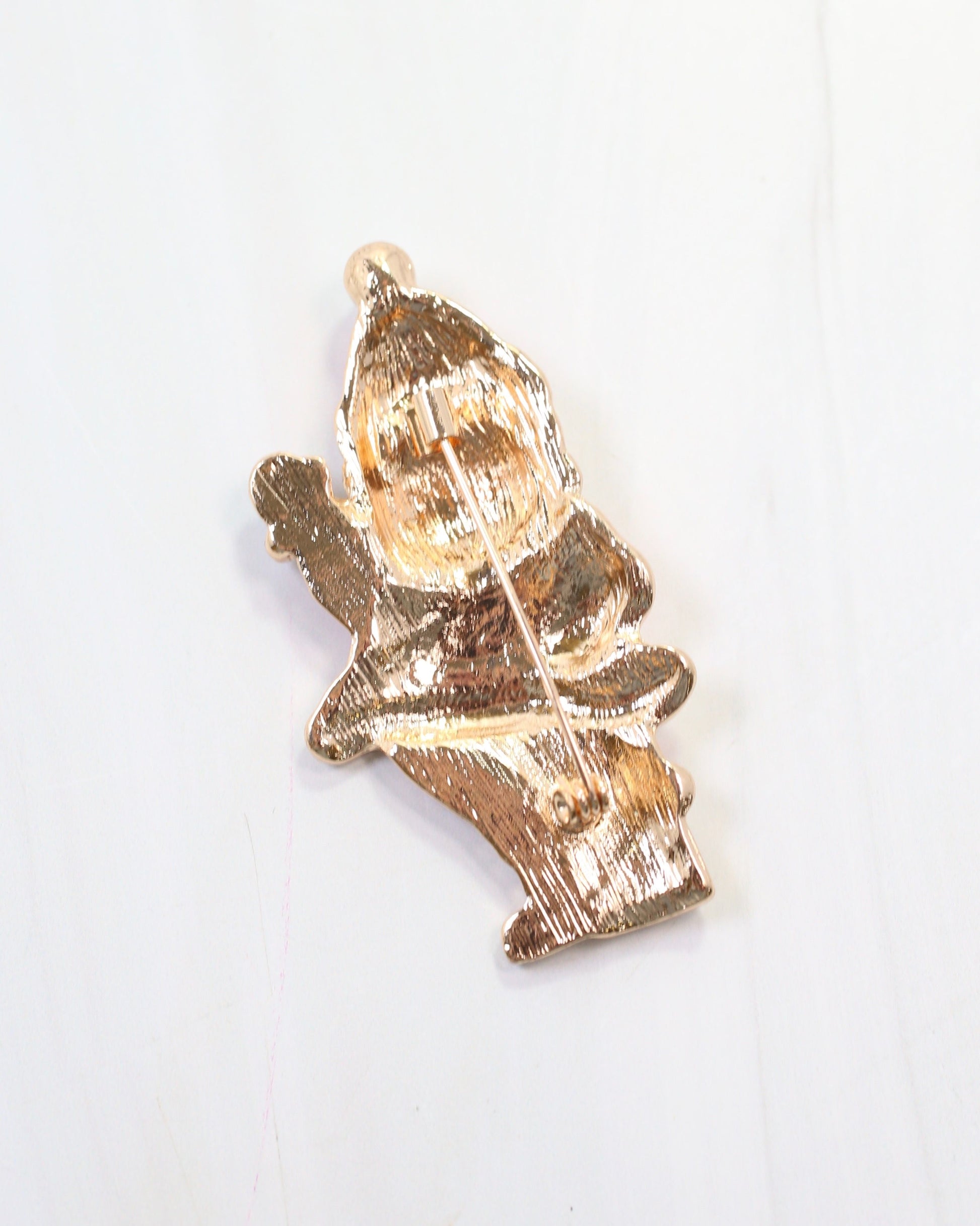 The Winking Santa Brooch in Pink features a vintage-inspired pink enamel Santa accented with delicate pearl details. This stylish pin adds a playful yet elegant touch, perfect for showcasing your holiday spirit with a fashionable twist.